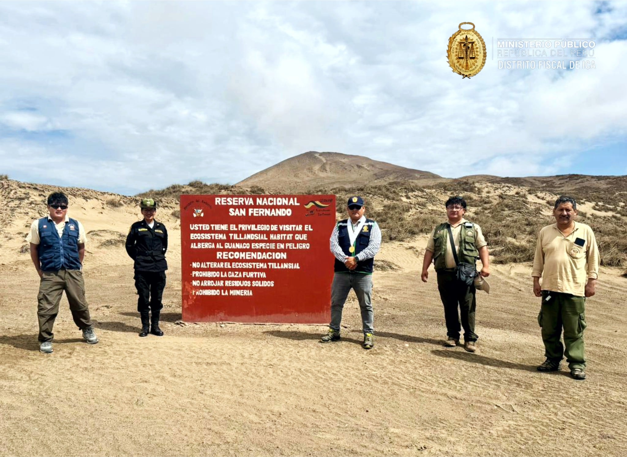La diligencia fue dirigida por el fiscal provincial Carlos Ochoa Flores, quien encabezó las acciones conjuntas con efectivos de la Unidad Desconcentrada de Protección del Medio Ambiente de la Policía Nacional del Perú (UNIDPMA PNP Ica) y especialistas del Servicio Nacional de Áreas Naturales Protegidas por el Estado (SERNANP), reafirmando el rol conductor del Ministerio Público en la lucha contra los delitos ambientales.