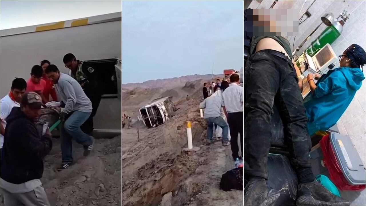 El pesado bus de placa F7G-961, se habría despistado para luego volcarse, dejando a 20 personas heridas. Inicialmente llegaron 5 al servicio de emergencia del Hospital Apoyo de Palpa, uno de ellos con posibilidad de referencia hacia la ciudad de Ica por su estado de salud.