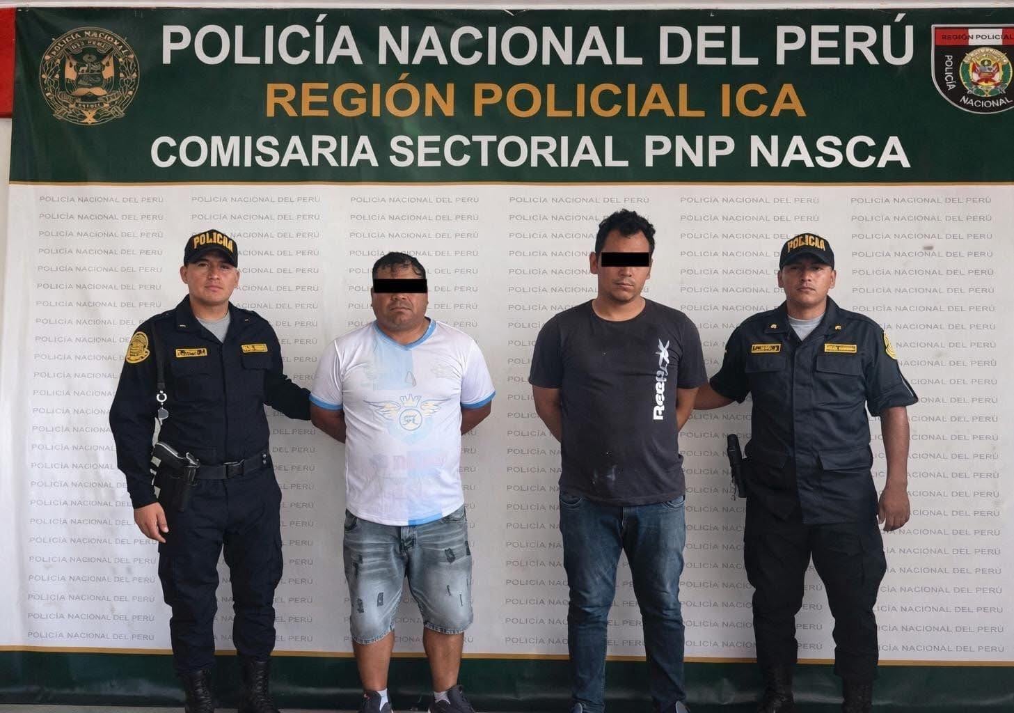 Tras la intervención, ambos sujetos fueron detenidos en flagrancia y trasladados a la comisaría de Nasca, donde se iniciaron las diligencias correspondientes. El Ministerio Público fue informado del caso para continuar con las acciones legales.