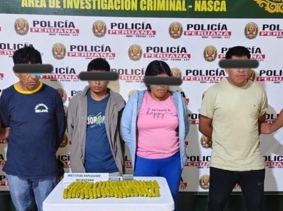 Un operativo ejecutado por el Área de Investigación Criminal de la Policía Nacional del Perú permitió la detención en flagrancia de cuatro personas por el presunto delito contra la seguridad pública, en la modalidad de fabricación, suministro o tenencia de materiales y residuos peligrosos. La intervención se realizó la madrugada del domingo 26 de enero de 2026, en la provincia de Nasca.
