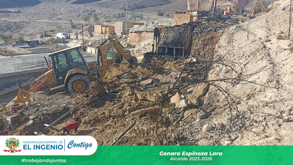 El alcalde del mencionado distrito, Genaro Espinoza Lara, junto al Área de División de Gestión de Riesgos y Transporte, se trasladaron con una retroexcavadora y volquete municipal, que trabajaron para mover los escombros y apoyar a esta familia que perdió todo. También se dispuso la ayuda humanitaria.