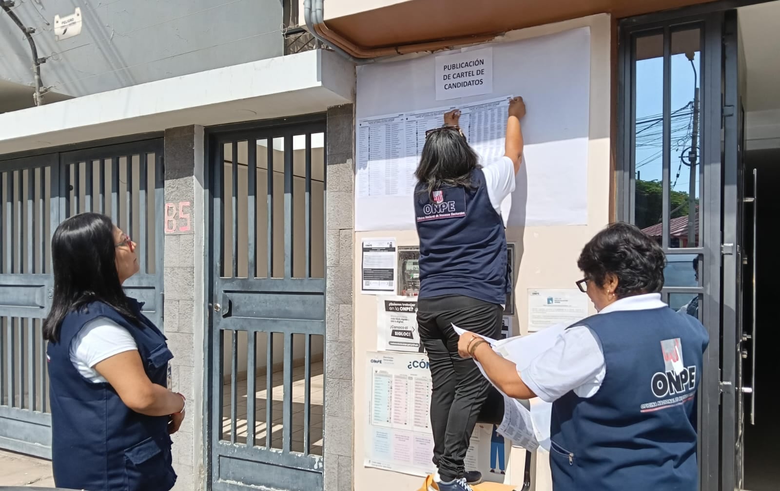 De acuerdo con los artículos 169 y 209 de la Ley Orgánica de Elecciones, la Oficina Nacional de Procesos Electorales debe difundir el cartel de candidatos en lugares públicos con una anticipación de 15 días previos a la fecha del proceso electoral, programado para el 12 de abril.