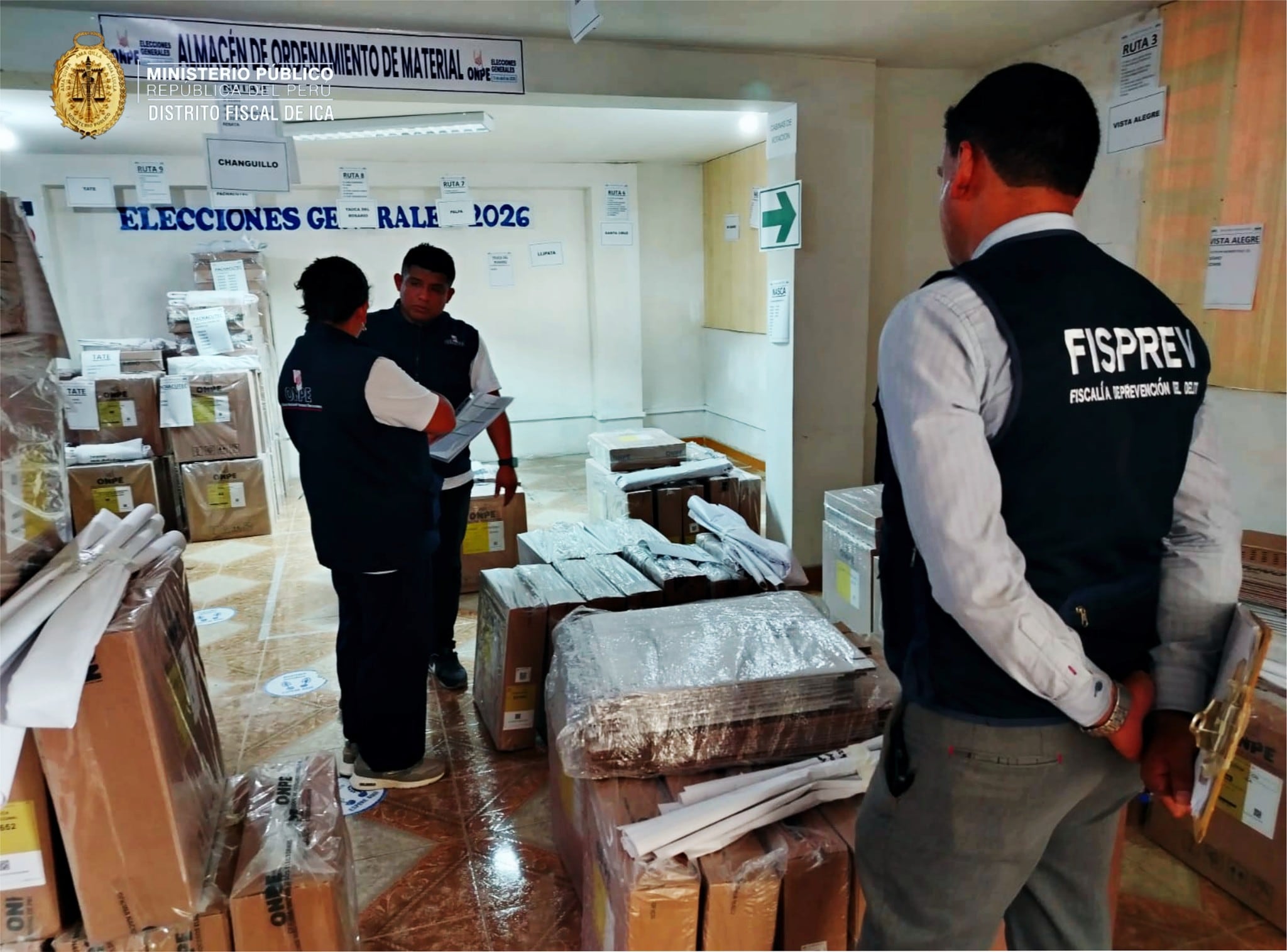 Cabe señalar que, la Fiscalía Provincial de Prevención del Delito de Ica, participó en el despliegue y verificación del material electoral destinado a las Elecciones Generales 2026, el cual será distribuido en 299 locales de votación ubicados en 64 distritos de la provincia de Ica.