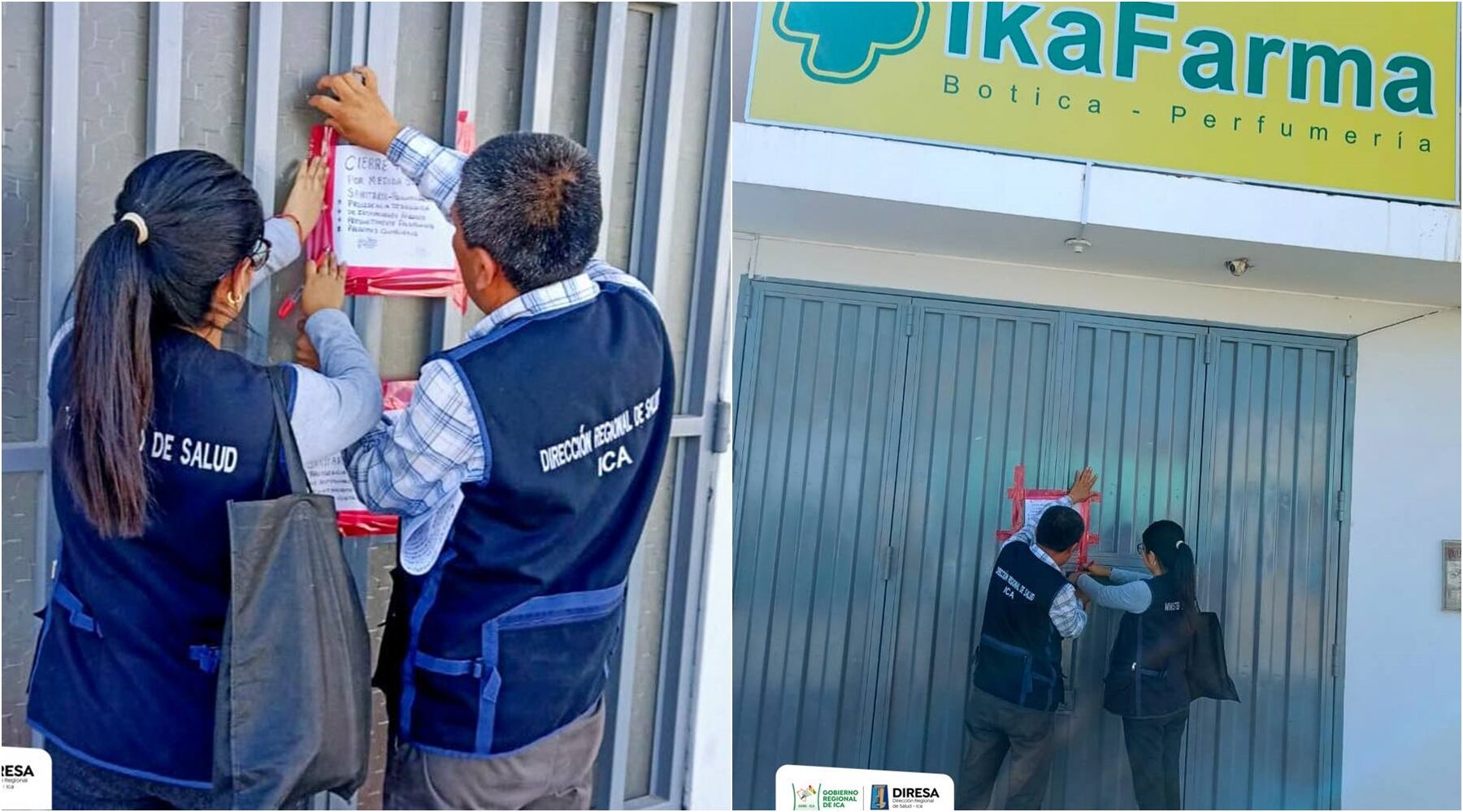 El personal de salud se apersonó a dos boticas ubicadas en los alrededores del Hospital de Apoyo de Palpa, con la finalidad de verificar el cumplimiento de las buenas prácticas de las Oficina Farmacéutica, a las cuales, se procedió con el cierre temporal y la incautación de los productos farmacéuticos y dispositivos médicos por incumplimiento de las normas sanitarias vigentes.