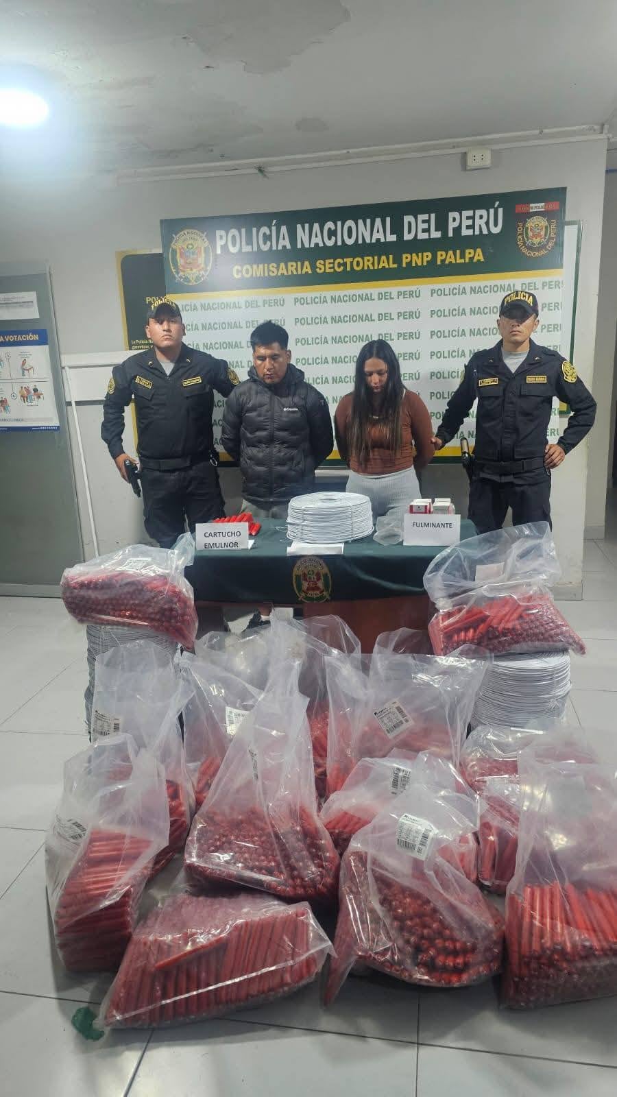 Un operativo ejecutado el 21 de noviembre en la provincia de Palpa permitió la captura de dos presuntos integrantes de la banda delictiva conocida como “Los Detonadores del Sur”, organización que, según fuentes policiales, estaría dedicada al manejo ilícito de explosivos utilizados para actividades criminales.