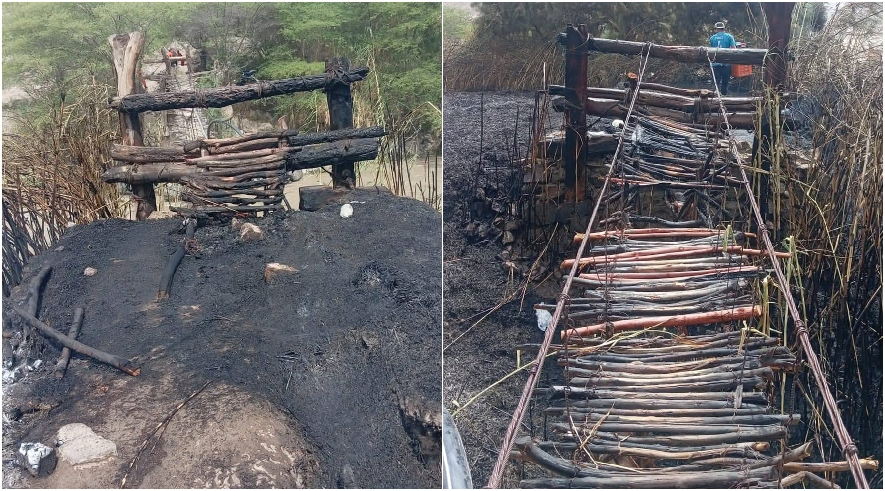 De acuerdo con información preliminar, el fuego consumió parte importante de la estructura elaborada con madera y sogas, materiales característicos de este tipo de puentes ancestrales. Hasta el lugar acudieron voluntarios del Cuerpo General de Bomberos, que lograron controlar las llamas tras varios minutos de labor.