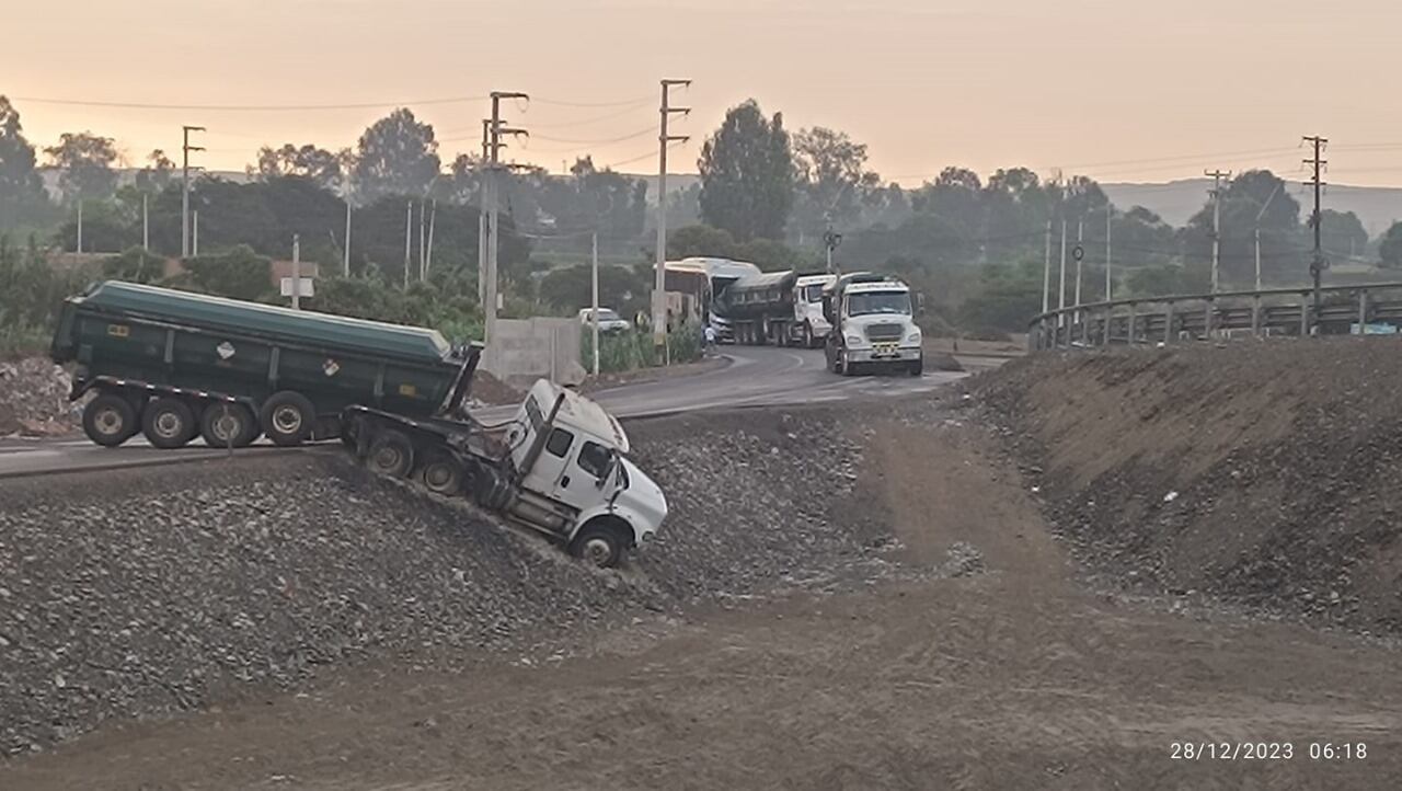 Ayer a las 3:12 de la madrugada se reportó un accidente de tránsito entre un bus interprovincial de placa de rodaje AJY-873 de la Empresa " Rey Bus" con un camión cargado de minerales, en Pisco.