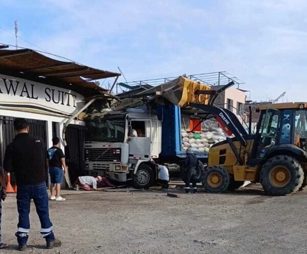 Ayer en horas de la madrugada un camión de carga pesada, el cual transportaba sacos, se empotró en la fachada de un hostal ubicado en plena carretera Panamericana Sur, por el sector conocido como el cruce de Pisco.