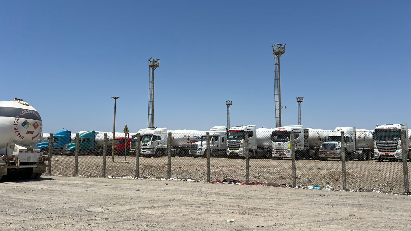 Una gran concentración de camiones cisternas se registra en los estacionamientos de la planta distribuidora de gas ubicada en Playa Lobería, en el distrito de Paracas, en la provincia de Pisco. Decenas de unidades de carga pesada permanecen dentro del recinto a la espera de abastecerse, generando una imagen inusual por la cantidad de vehículos alineados en los espacios habilitados.