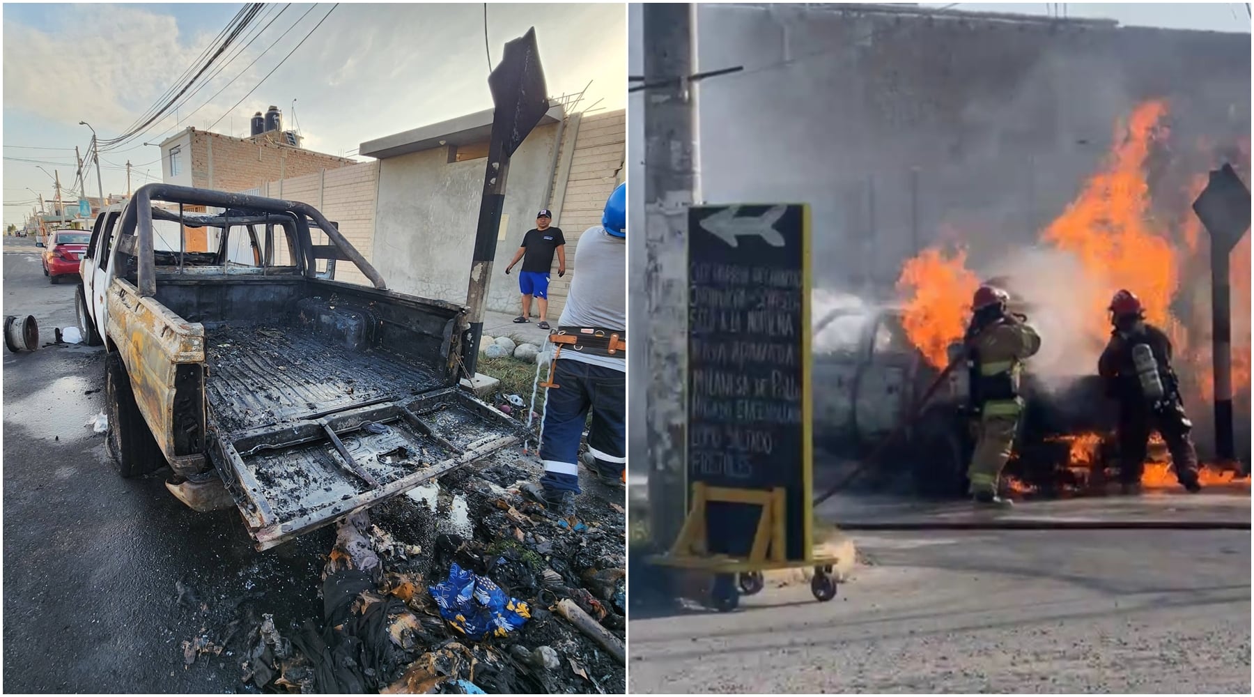 El vehículo de marca Nissan, color blanco y de placa A3X-808, era conducido por el pescador David Saens, y llevaba en la tolva seis galones de petróleo que serían utilizados para sus faenas de pesca en altamar. Según relató el propio conductor, mientras realizaba el abastecimiento observó una chispa y, pese a los intentos iniciales por controlar el fuego con extintores, las llamas comenzaron a expandirse peligrosamente en pleno grifo.