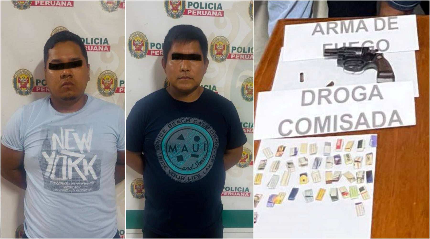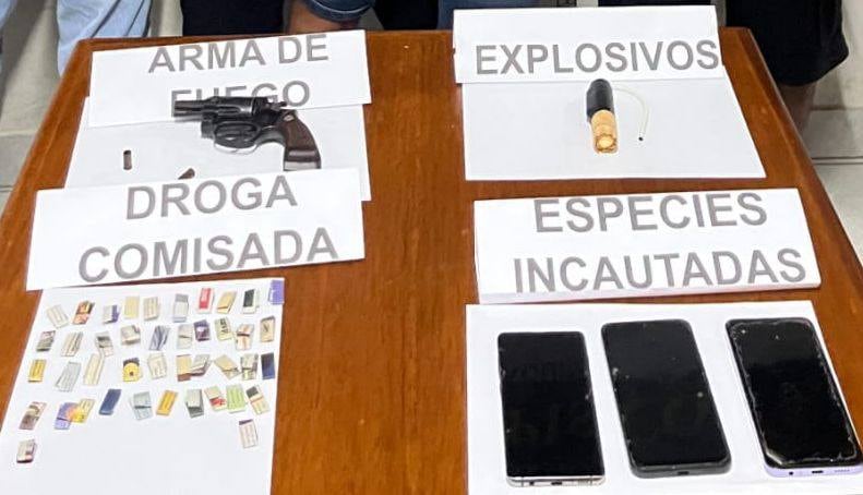 Durante el registro personal, la policía halló en poder de los intervenidos un revólver, dos municiones, un cartucho de dinamita y 44 ketes de pasta básica de cocaína (PBC), evidencias que fueron incautadas para las diligencias correspondientes.