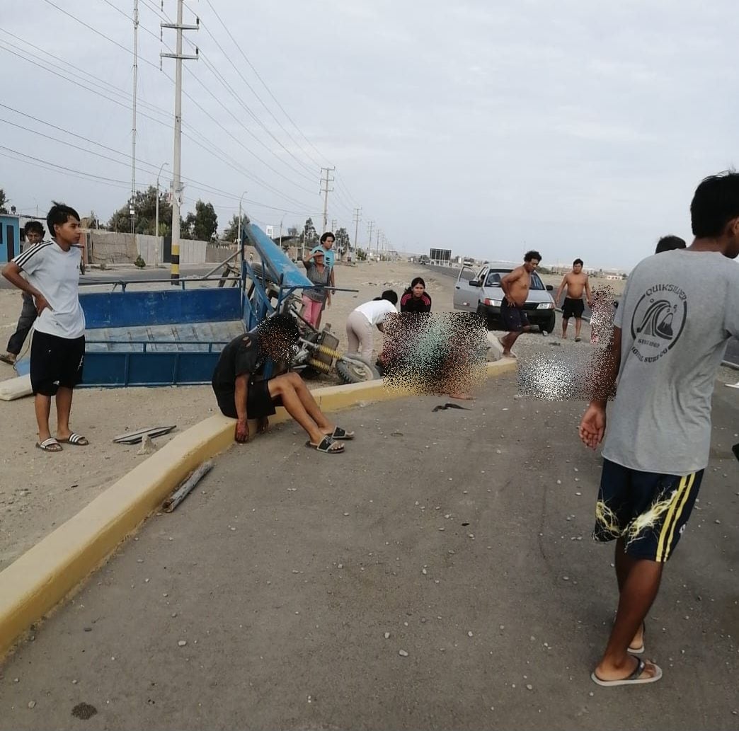 El impacto dejó la motocarga completamente destrozada y provocó heridas en cuatro personas. Entre los afectados se encuentran la señora Gregoria Teccsi Vda de Quispe de 54 años, sus hijos Kleverson Quispe Teccsi (19) y un menor de 16 años, así como Jesús Oré Pahuara (64). Todos fueron trasladados de emergencia al hospital San Juan de Dios de Pisco para recibir atención médica.