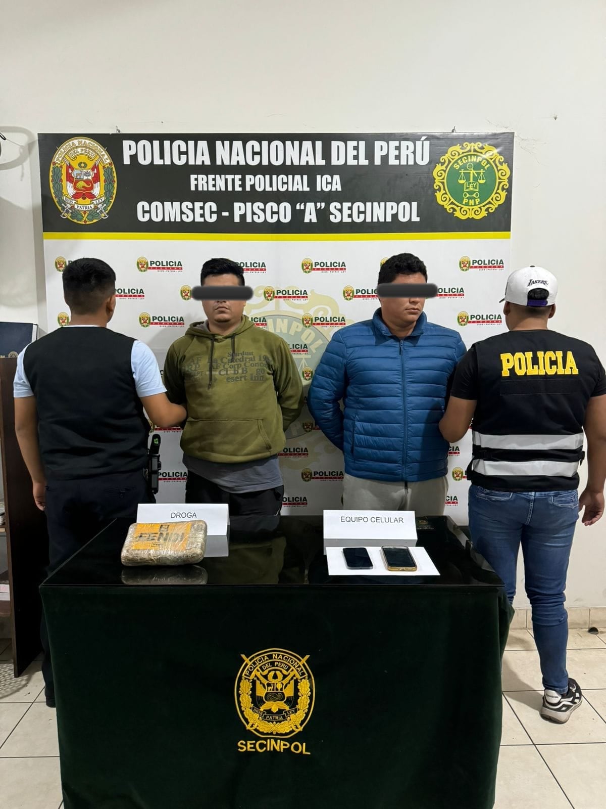En horas de la madrugada, entre la calle Comercio y avenida Las Américas (Pisco), por información de la Dirección de Inteligencia, efectivos de la comisaría de Pisco, dentro de los términos de flagrancia de delito, lograron la detención de Erik Alonso Salguero Sánchez de 32 años y Jean Pool Fernández Andia (32), quienes serían presuntos integrantes de la banda criminal denominada “Los camaleones del Sur”, presumiblemente dedicados al delito de tráfico ilícito de drogas y otros.