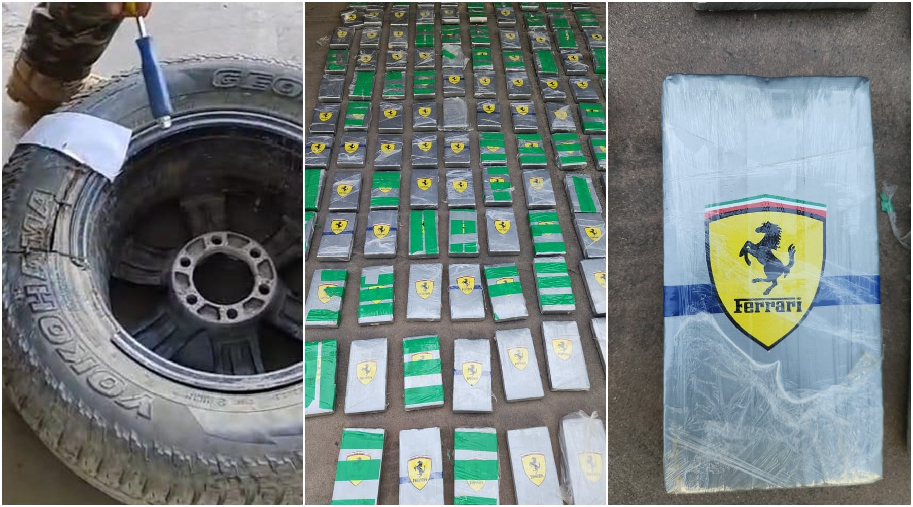 Según el acta de intervención, los efectivos policiales detuvieron el vehículo de placa de rodaje BDT-887 y, durante la inspección de la tolva, advirtieron la presencia de una cajuela de color negro. En su interior se hallaron varios paquetes prensados y precintados con papel platino, los cuales llevaban impreso el logotipo de la marca Ferrari, modalidad comúnmente utilizada por organizaciones dedicadas al narcotráfico para identificar cargamentos.