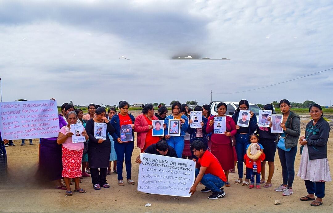 Los pescadores desaparecidos han sido identificados como Ernesto Acosta Vidaurre (patrón de lancha), sus hijos Óscar Joel Acosta Damián y Cristian Fabián Acosta Damián, sus sobrinos Eduardo Acosta Llontop, Joel Vidaurre Sosa y Danny Acosta Agapito, así como Jonathan Agapito Llontop, Franco Jonathan Pisfil Agapito y Brayan José Acosta Urcia.