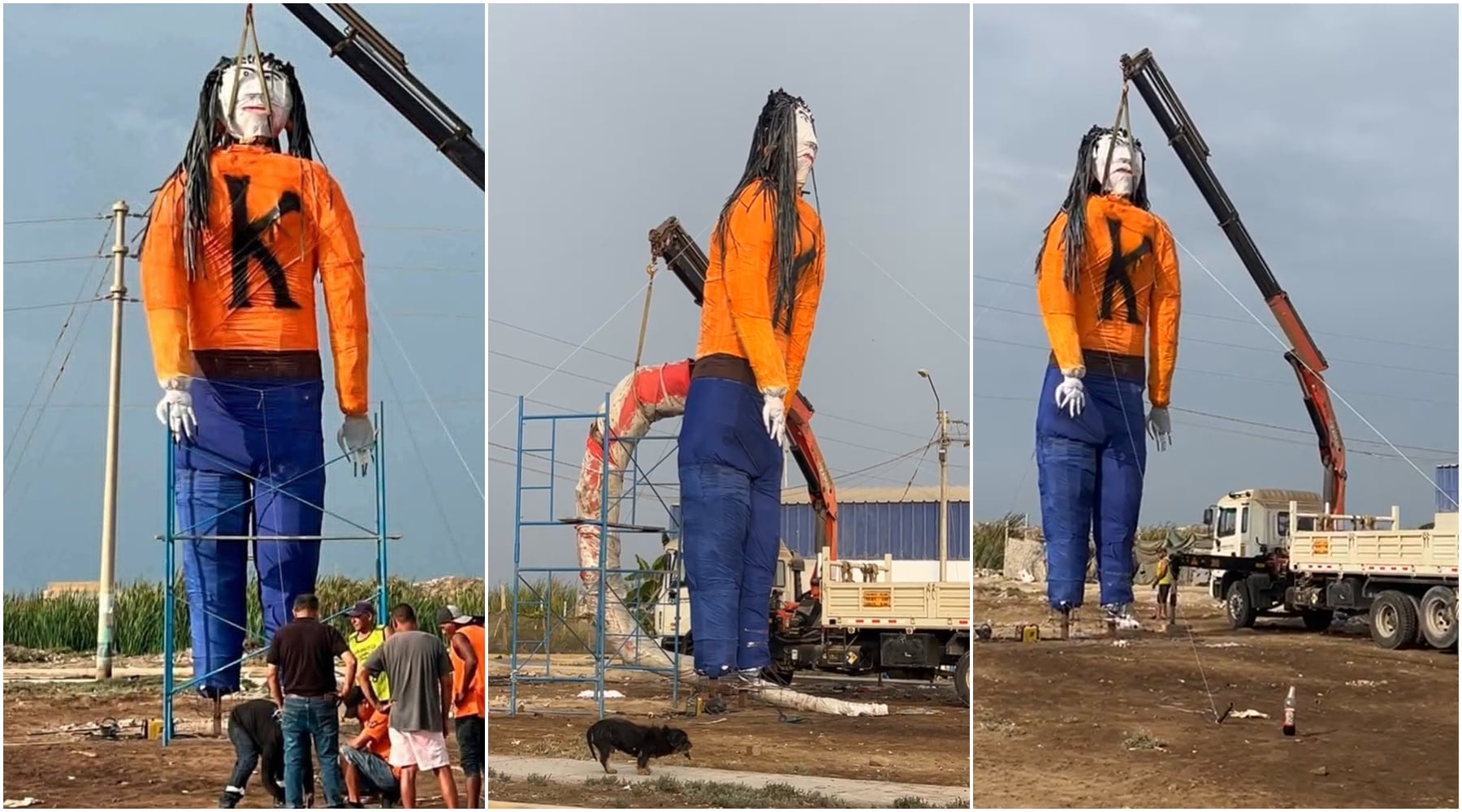 El muñeco, que portaba ropa naranja y la letra “K”, fue uno de los más grandes que se han instalado en la región Ica para estas festividades. Aunque su quema forma parte de la tradición de recibir el año nuevo, la elección de colores y símbolos despertó interpretaciones relacionadas con figuras políticas conocidas. Además se le puso una cola de rata de más de 8 metros.