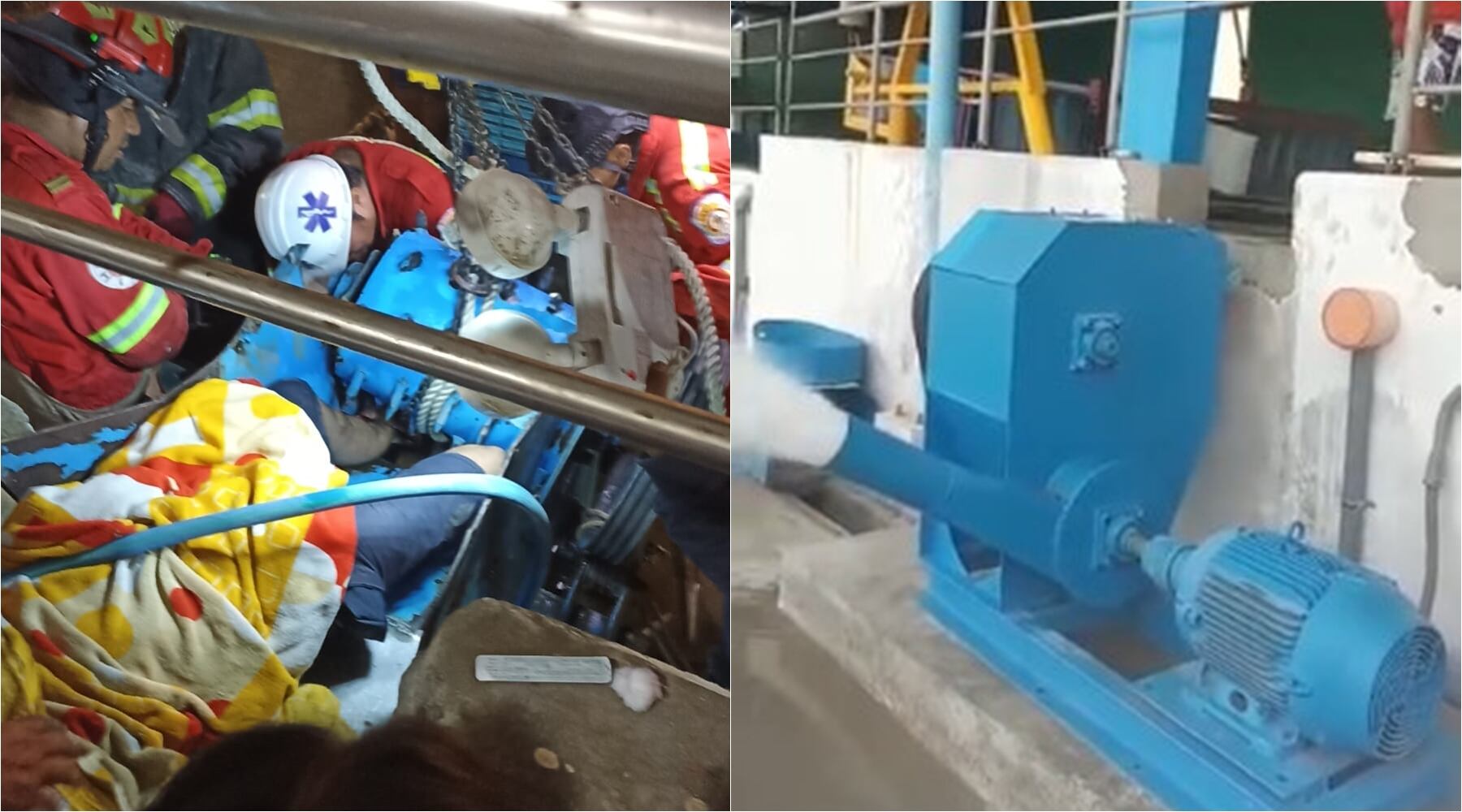 Minutos después llegó personal de serenazgo del distrito local y personal voluntario de la compañía de bomberos N° 37 de Pisco, quienes auxiliaron a la persona de Jerson Antonio Pecho Barrientos de 25 años quien se encontraba atrapado entre los fierros, con una pierna ingresada en la trituradora de hielo.