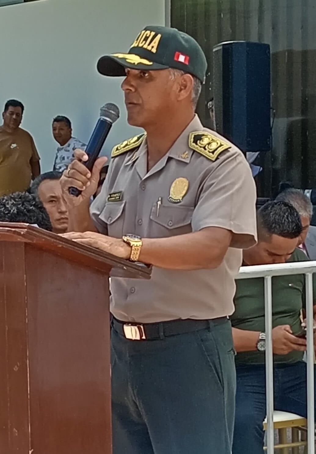 “La policía ha dado duros golpes a lo que es el delito común y el crimen organizado, hemos desbaratado bandas criminales en Chincha Pisco, y también combatiendo los delitos en Ica. De enero a marzo del 2024, comparado con el mismo periodo del 2023, a nivel nacional se ha registrado un alza del 3.9 % el índice delictivo, sin embargo, en Ica se ha logrado el descenso de lo que es la incidencia delictiva en un 19 % y estamos entre los tres primeros departamentos a nivel nacional que registra disminución del índice delictivo”, declaró.