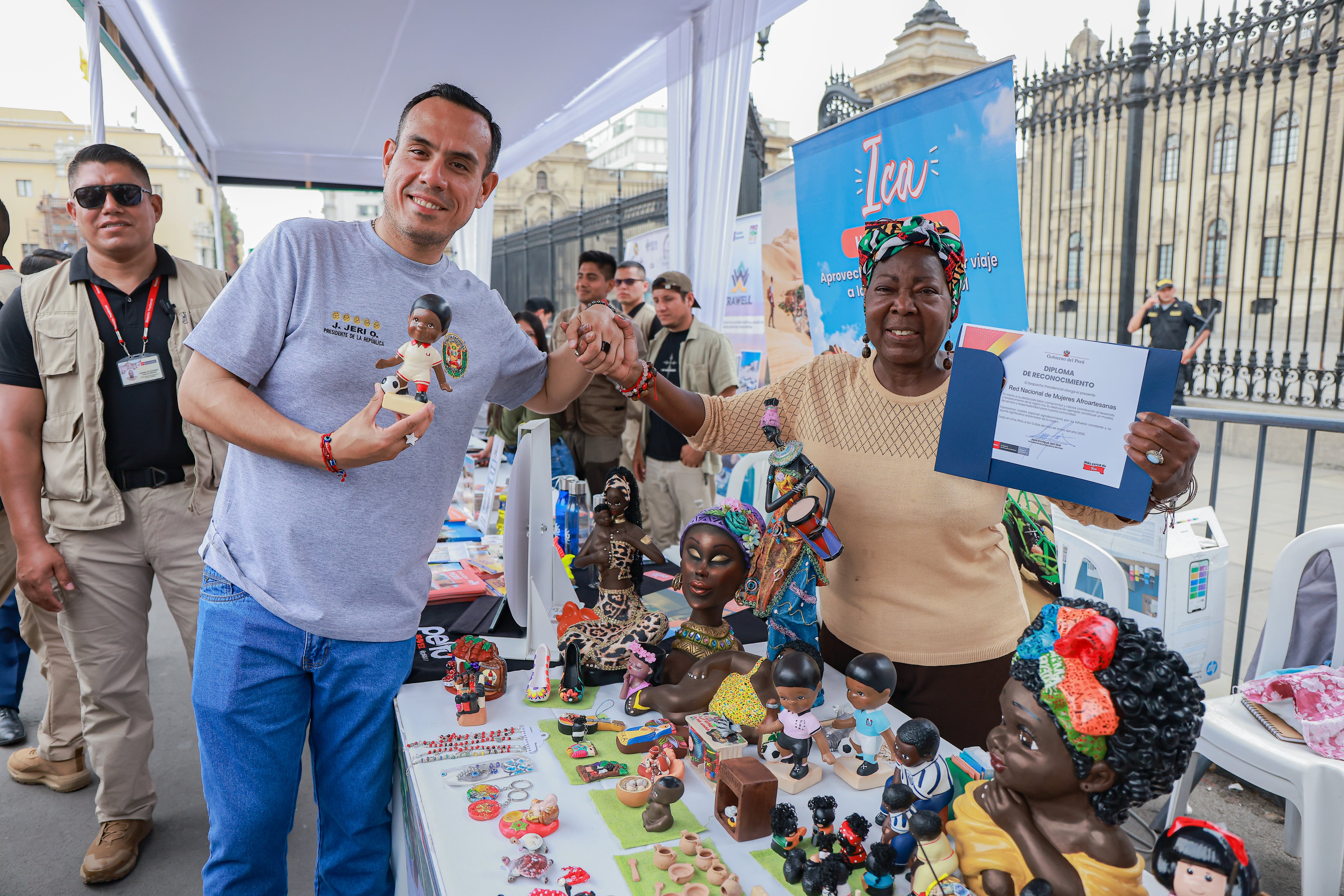 La actividad se realizó con la presencia del presidente de la República, José Jeri, y de la ministra de Comercio Exterior y Turismo, Teresa Mera Gómez, quienes recorrieron los distintos stands instalados en el corazón de la capital. Durante la visita, las autoridades pudieron conocer de primera mano productos emblemáticos como piscos, vinos, dulces tradicionales y artesanías elaboradas en la región.