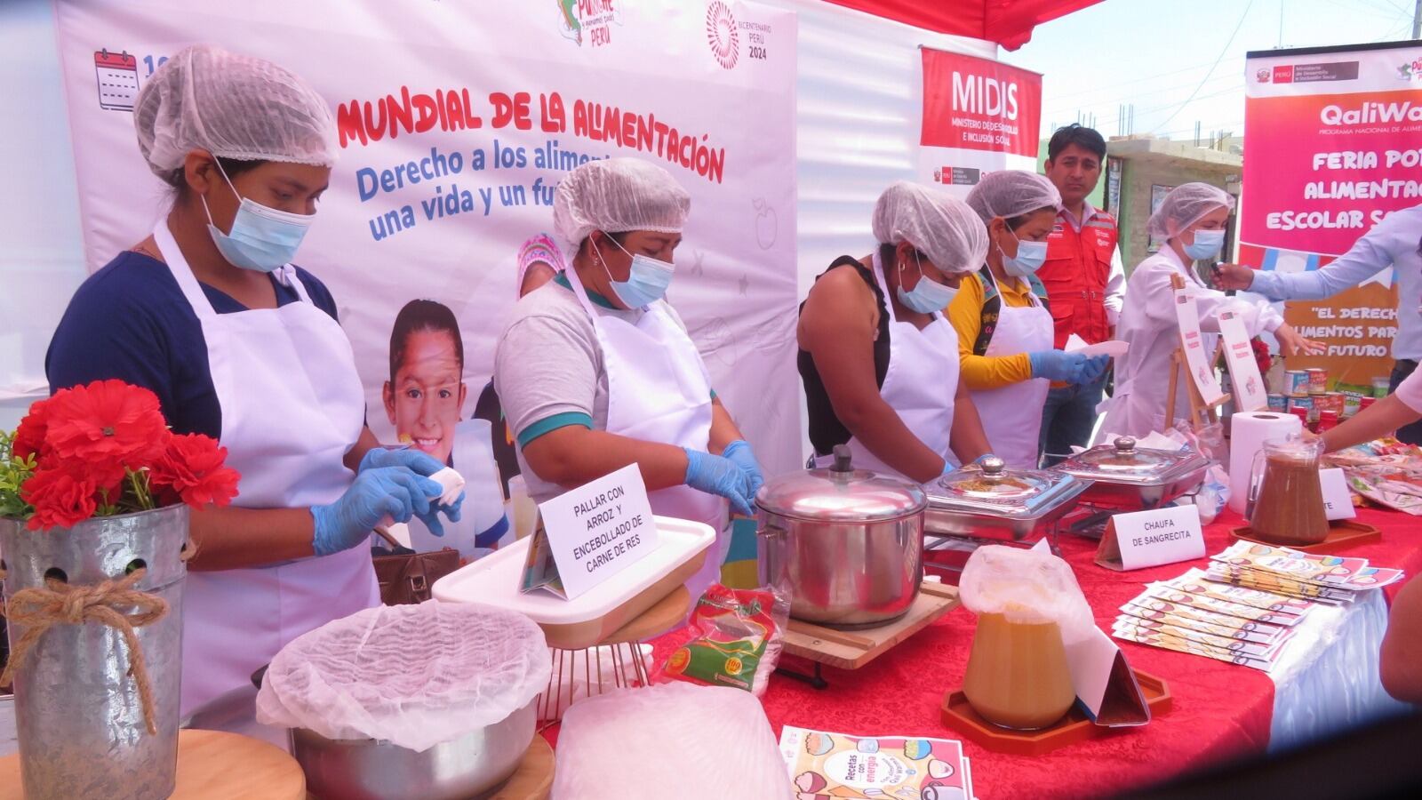En el marco de las celebraciones por el Día Mundial de la Alimentación, los Comités de Alimentación Escolar de los colegios atendidos por el Programa Nacional de Alimentación Escolar Qali Warma participaron de la feria multisectorial realizada en la provincia de Pisco, donde se presentaron potajes de alto valor nutritivo elaborados con los productos que se entregan a las escuelas para la preparación de los desayunos escolares.
