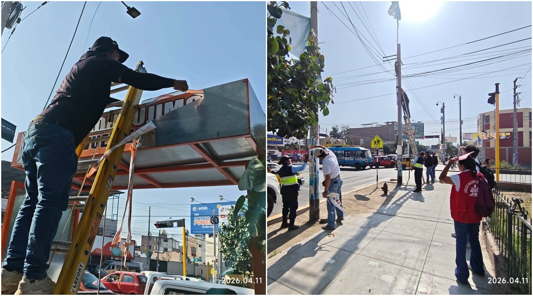 En Ica, brigadas municipales intervinieron en avenidas principales como José Matías Manzanilla y JJ Elías, así como en los exteriores de instituciones educativas como los colegios San Luis, San Luisito y Las Mercedes, donde se retiró gran cantidad de propaganda instalada sin autorización.