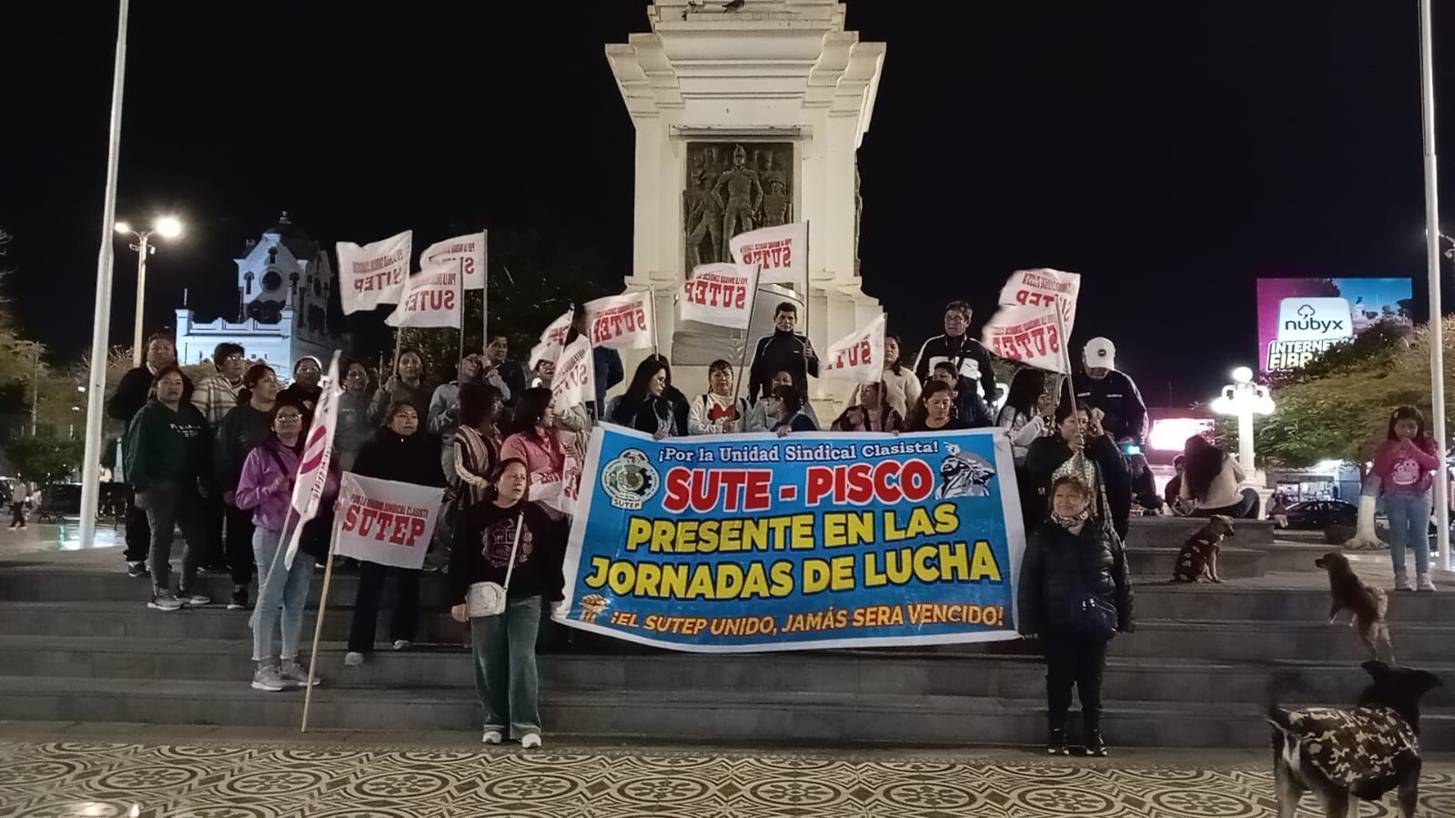 Durante la noche del miércoles, docentes afiliados al Sindicato Unitario de Trabajadores en la Educación del Perú (SUTEP), base Pisco, llevaron a cabo una vigilia y movilización que reunió a maestros activos, auxiliares, cesantes y jubilados de toda la provincia.