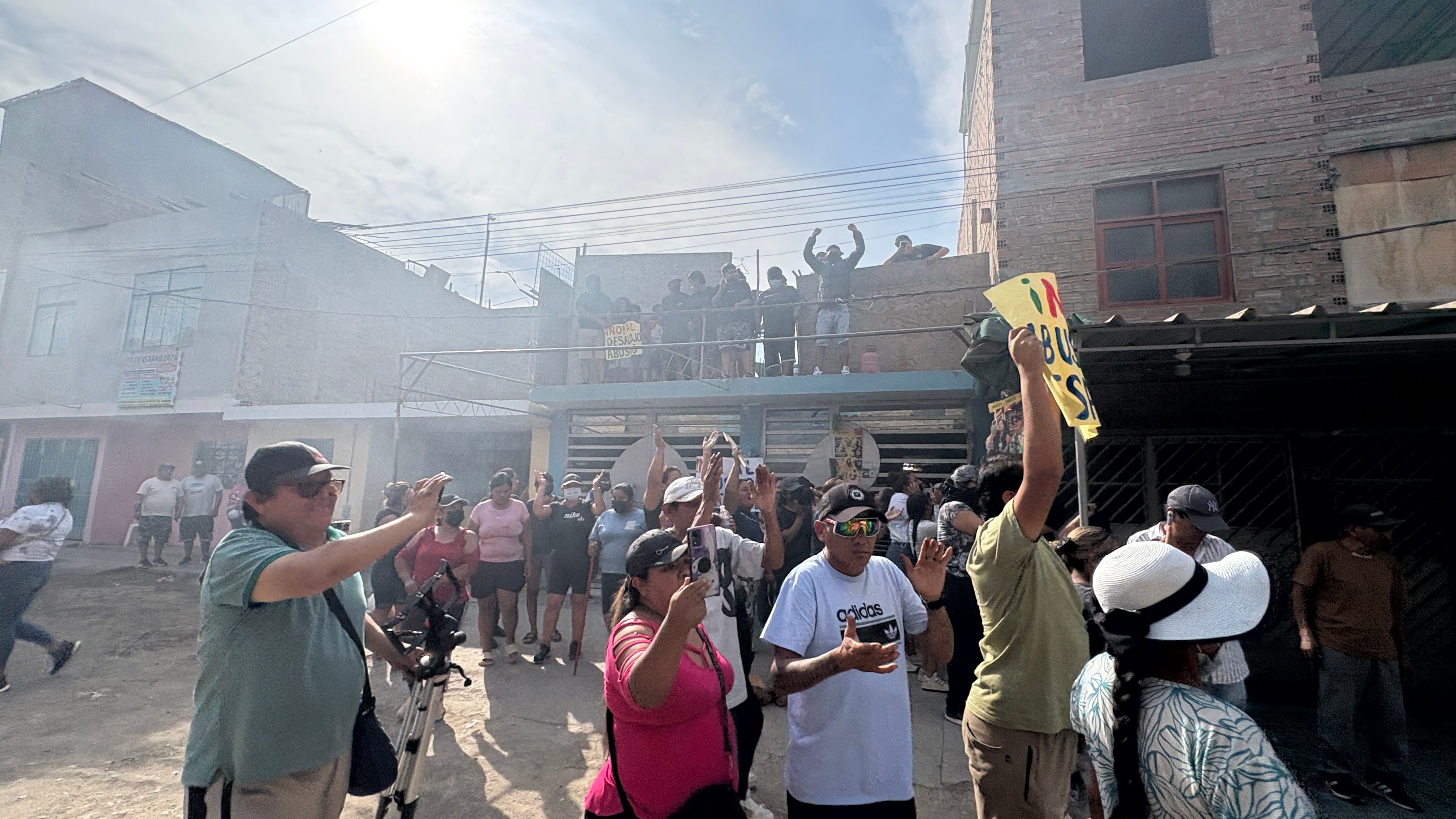 Durante la intervención, se registraron momentos de alta tensión. Los ocupantes adoptaron medidas radicales como la quema de llantas, colocaron cadenas en la puerta principal y se atrincheraron dentro del inmueble. A la zona llegó un contingente de la Policía Nacional del Perú, encabezado por el comisario de Parcona, comandante PNP. Jesús Alfredo Díaz Pérez.