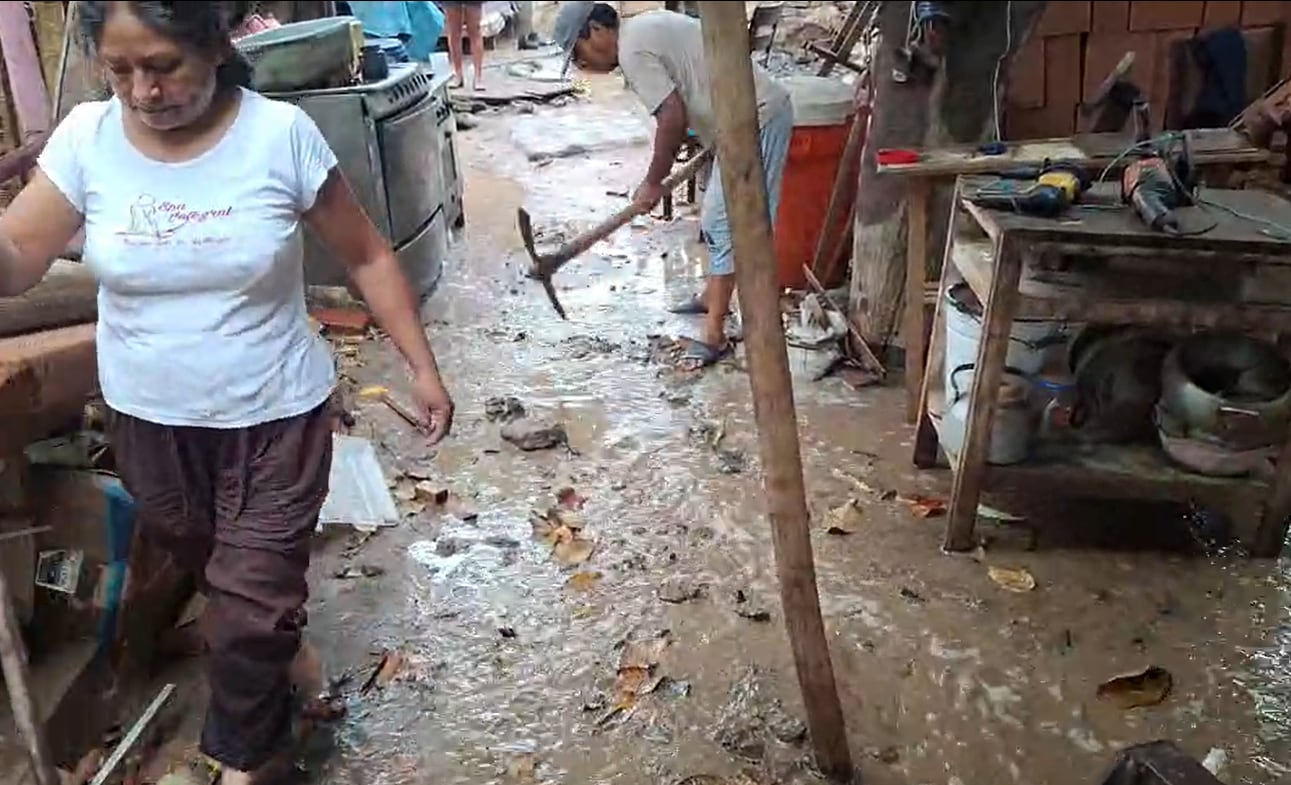 El aumento del caudal de los ríos Aja y Tierras Blancas provocó el ingreso de agua en viviendas de asentamientos humanos. Moradores solicitaron apoyo con plásticos y ayuda inmediata.