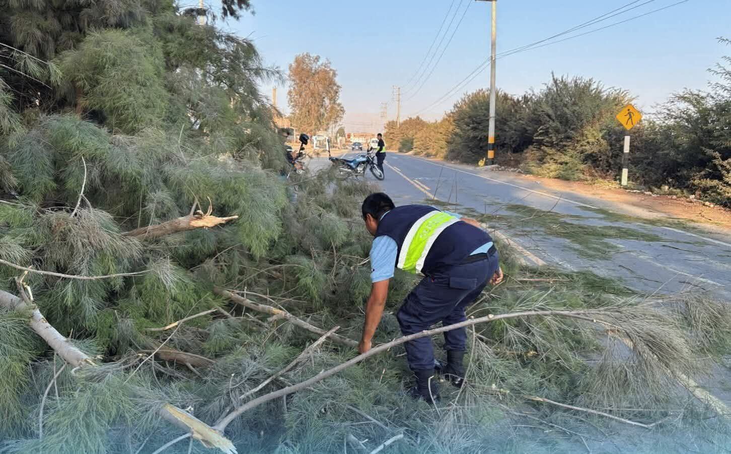 El libre tránsito de la vía Los Libertadores, en el ingreso al distrito de Humay, fue interrumpida por una media hora a consecuencia de la caída de un árbol por los fuertes vientos “paracas” de 35 kilómetros por hora, según el Senamhi.
