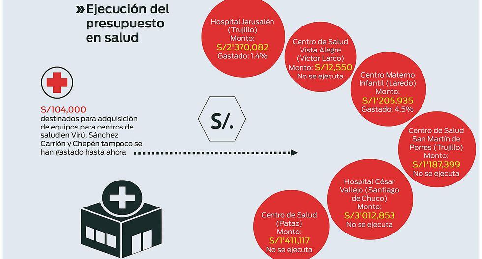 A pesar de las carencias en equipos y la mala infraestructura de la mayoría de hospitales y centros de salud, el Gobierno Regional de La Libertad y la Gerencia Regional de Salud (ambos unidad ejecutoras) no gastan el presupuesto que se les ha asignado para este sector.