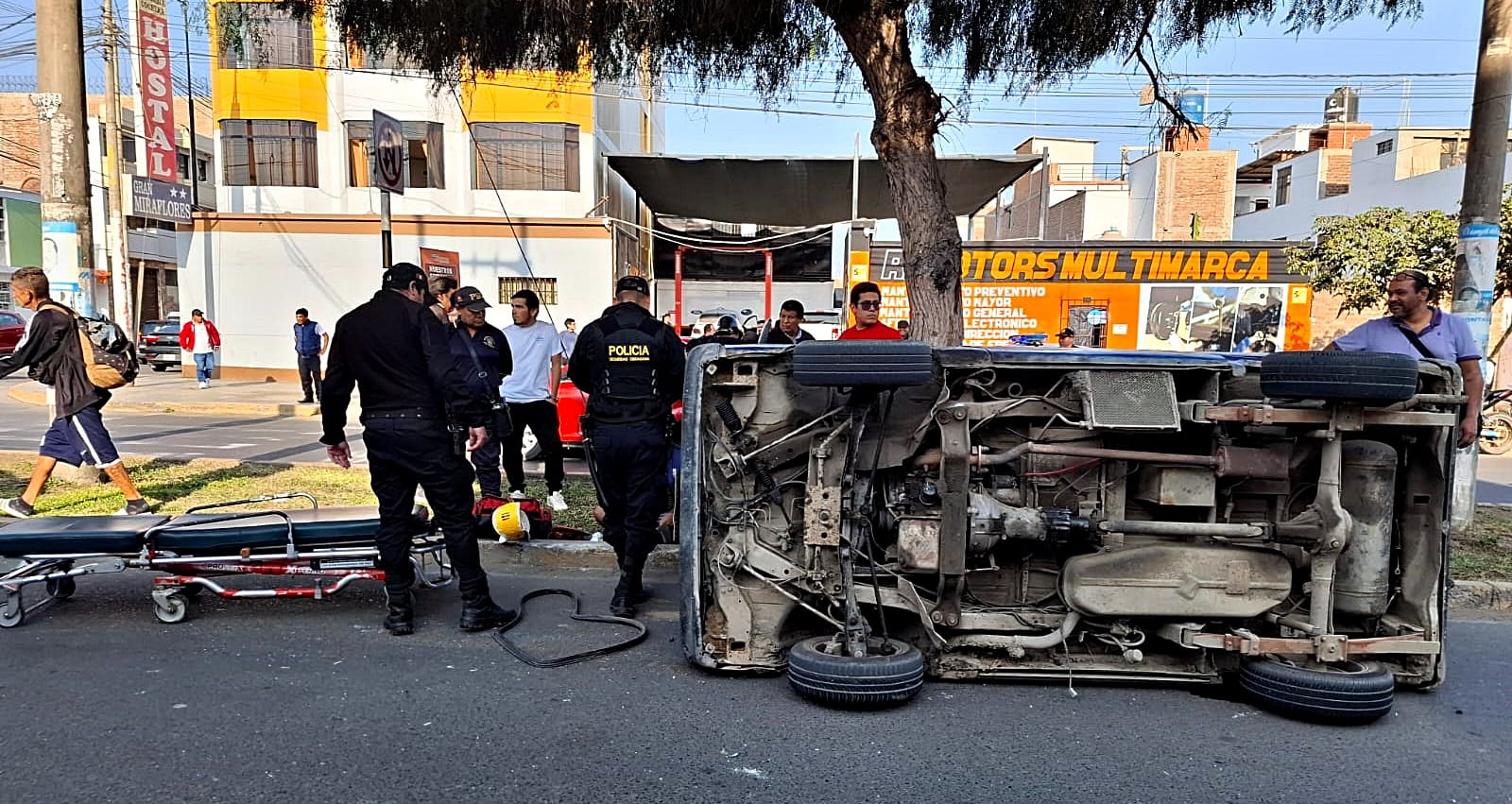 La miniván de placa de rodaje ABF-816, manejada por Carlos Zavaleta Vega (26) colisionó con el automóvil de número de matrícula T4Z-106, conducido por Javier Guzmán Alor (67). Tras el choque, el primero de los aludidos perdió el control de su unidad y quedó volteado en medio de la vía.