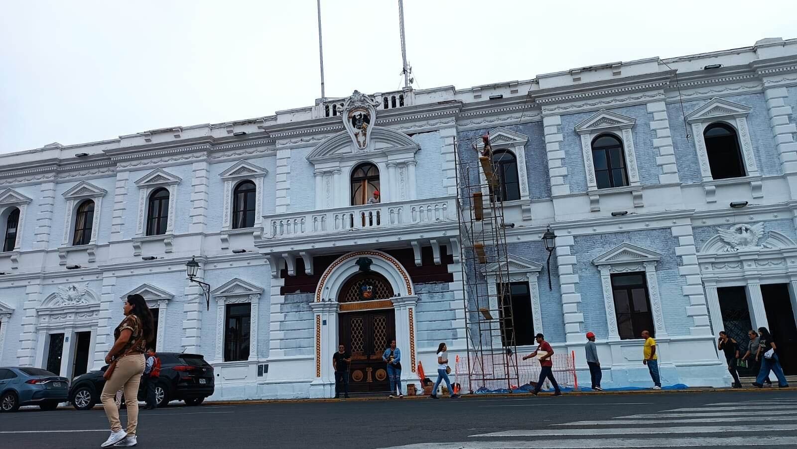 Varios obreros han armado andamios en la fachada de la comuna y ya han colocado una base de color blanco, pero lo que mantiene desconcertada a la población es desconocer cuál es el color que se usará definitivamente. Por ahora se ha colocado el color dorado y verde en el pórtico de la comuna y eso alertó a las autoridades de la Dirección de Cultura.