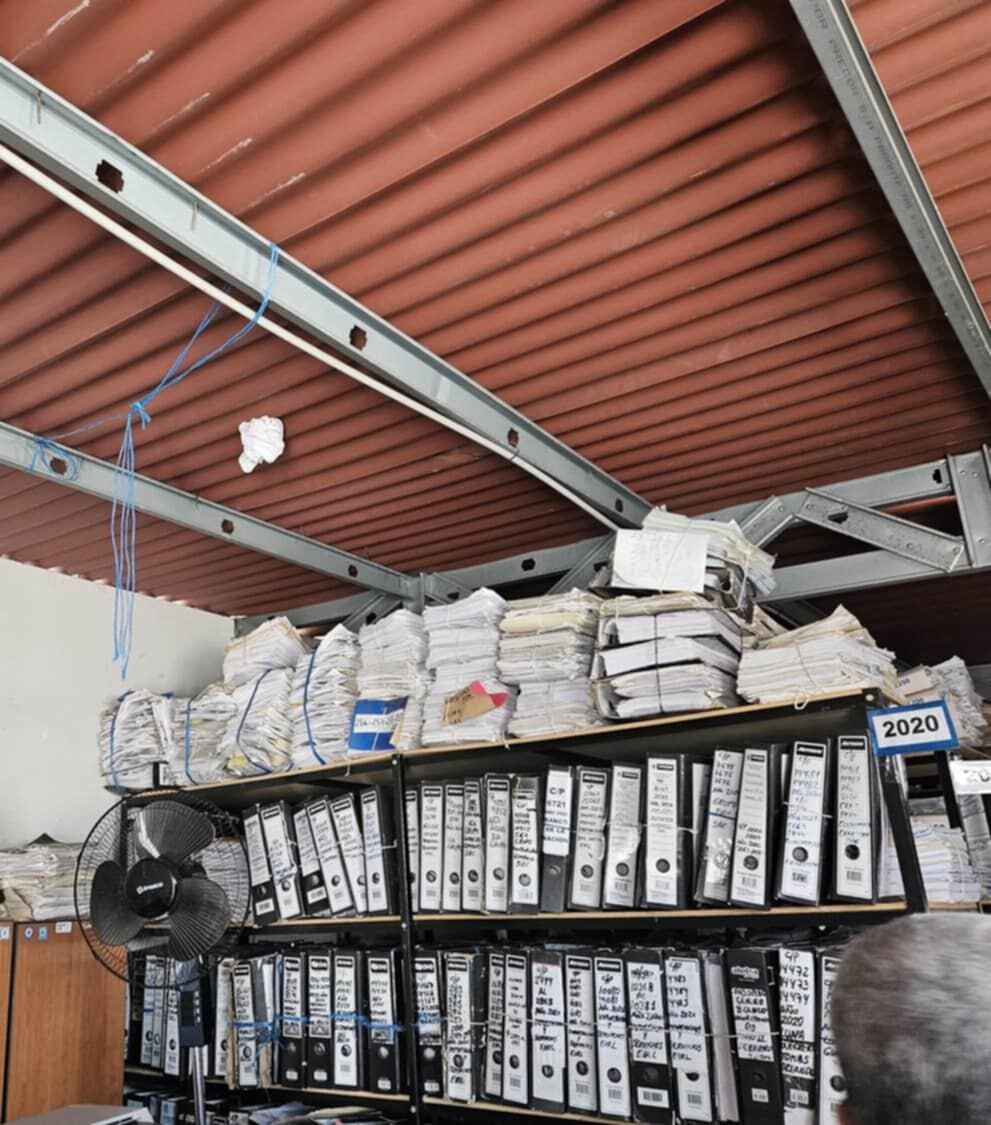 Las claraboyas están en pésimas condiciones, las calaminas y fibraforte sujetadas con alambres, para que el aire no se las lleve, hay estructuras oxidadas de fierro que sostienen las claraboyas que se pueden venir abajo, alrededor de los equipos de aire acondicionado hay hasta vegetación por la humedad, expuso. El regidor sostuvo que en Palacio Municipal hay bajas de tensión, se va la luz y se cae la señal de internet debido al estado de los cables, lo que es una clara señal de que algo no está bien. Han cambiado las llaves magnéticas pero se necesita cambiar el cableado, agregó.