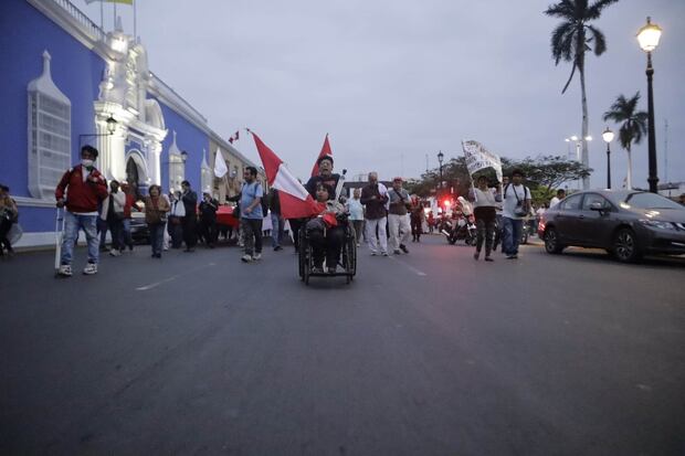 Los manifestantes se concentraron en la plaza de armas de Trujillo y luego avanzaron por varias cuadras. En el camino algunas personas se iban sumando a la protesta.