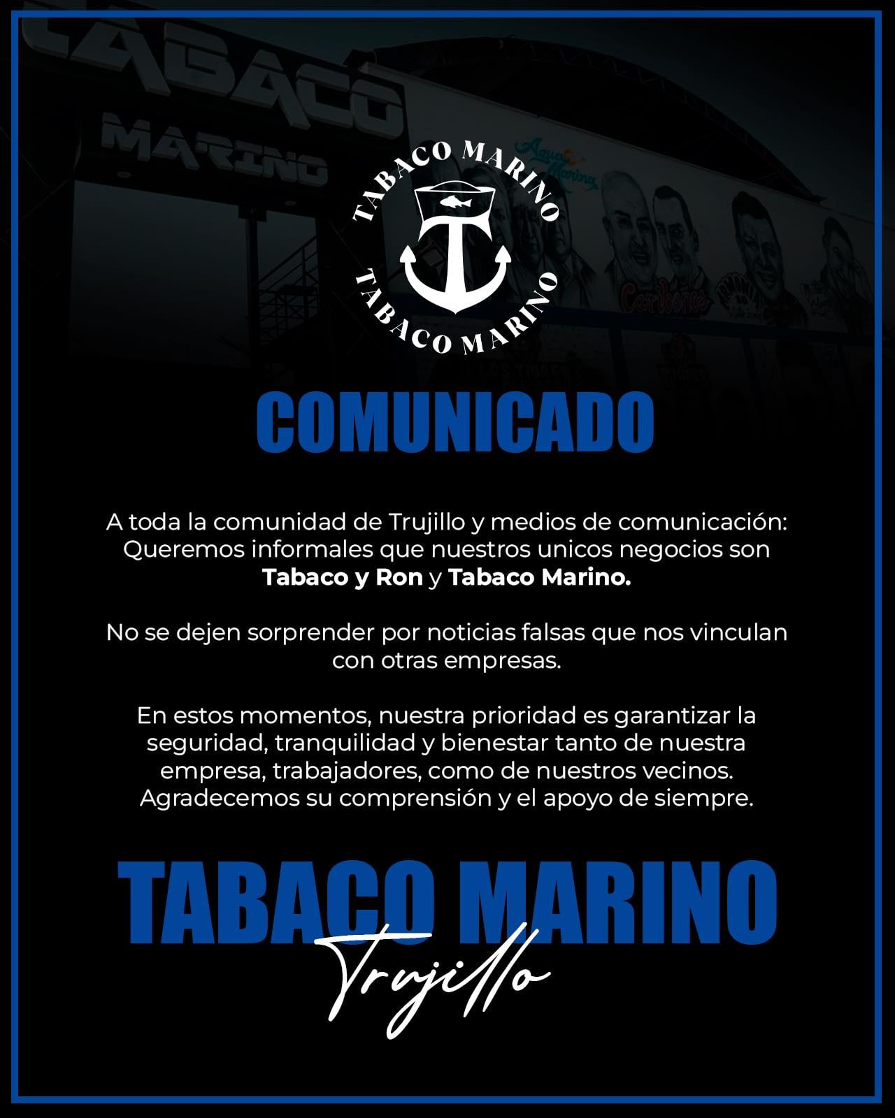 Sin embargo, la cadena de discotecas Tabaco Marino emitió un comunicado para rechazar la versión de la Policía sobre el vínculo empresarial. La empresa sostiene que solo comparte la administración con Tabaco y Ron