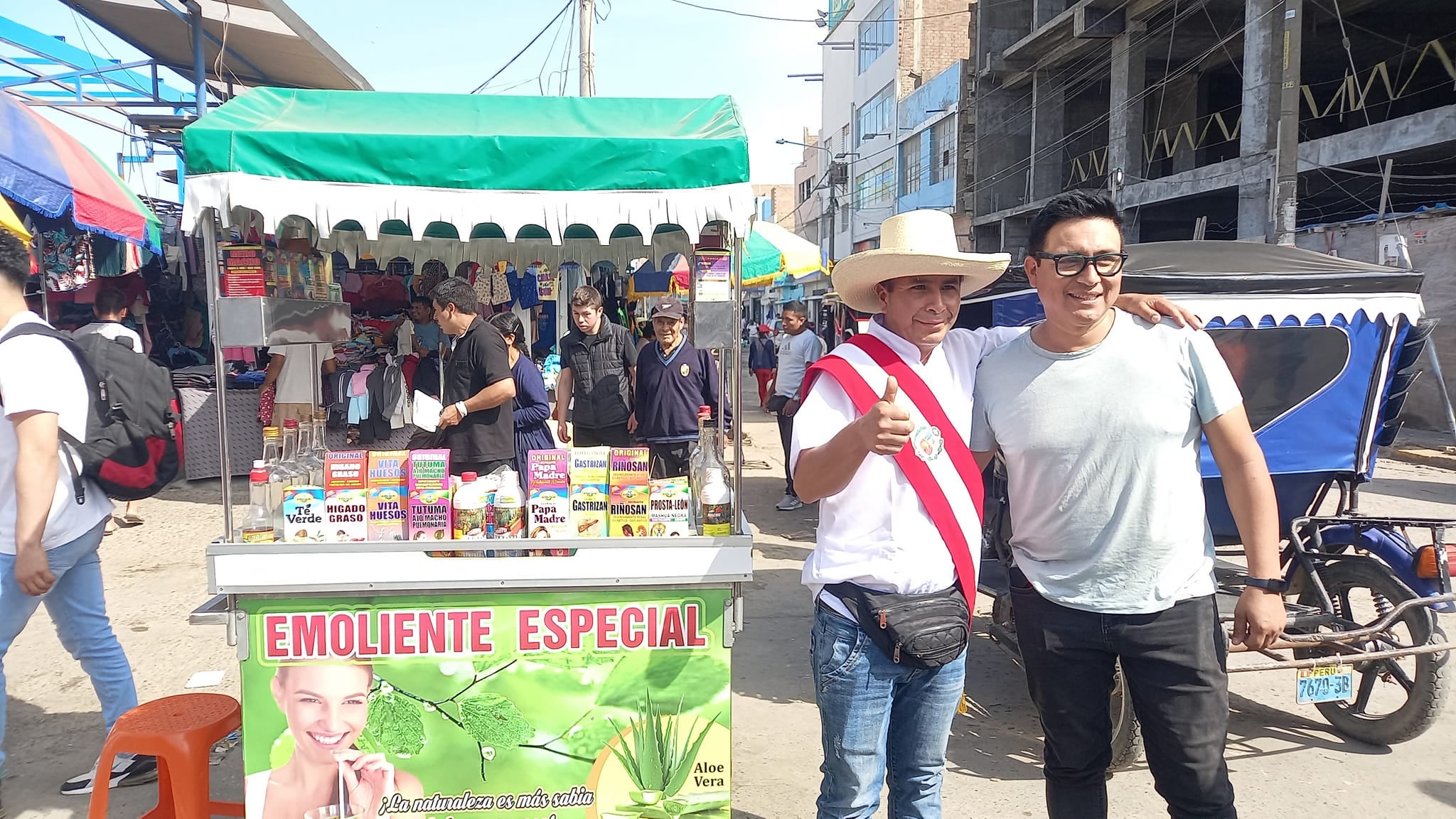 Un comerciante que vende emoliente en los exteriores del mercado Modelo de Chiclayo se hizo viral en las redes sociales debido a su gran parecido físico con el expresidente Pedro Castillo Terrones.