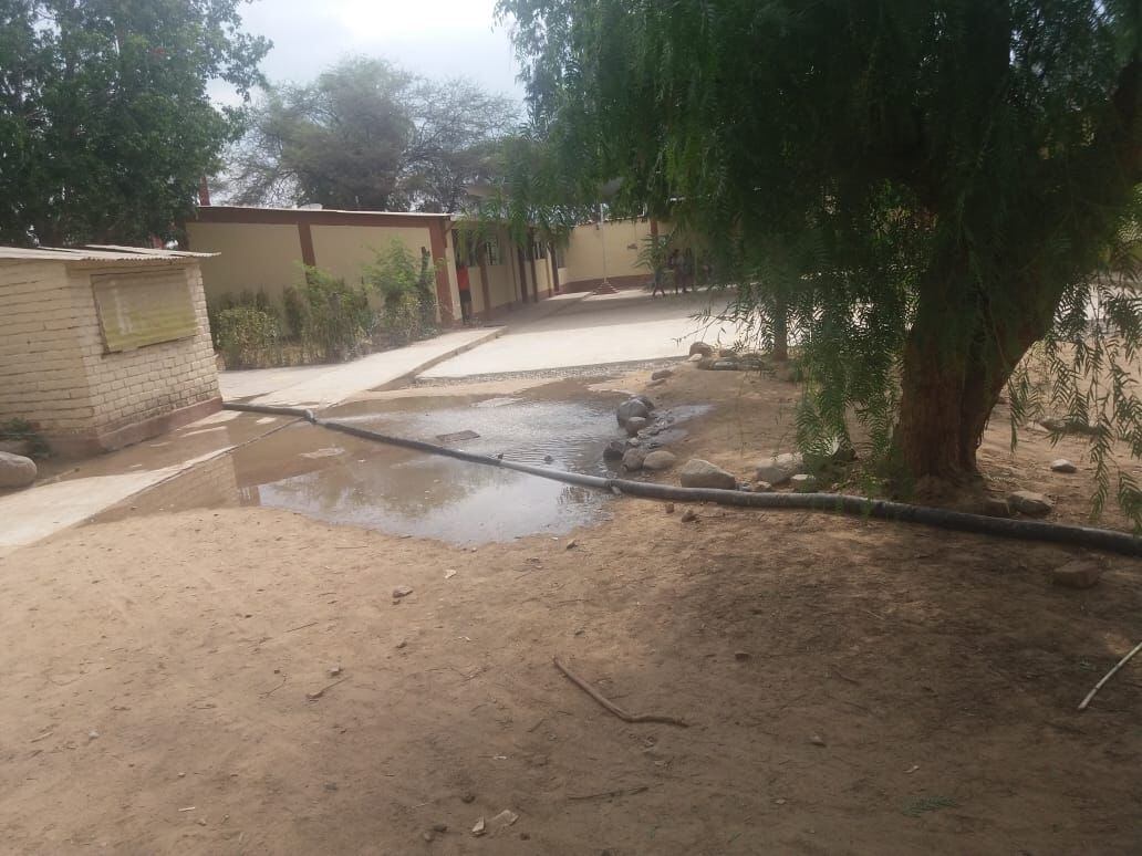 El sistema de desagüe colapsó hace más de 10 días en el interior de la Institución Educativa Nº 10208, del distrito de Túcume, afectando a 426 alumnos.