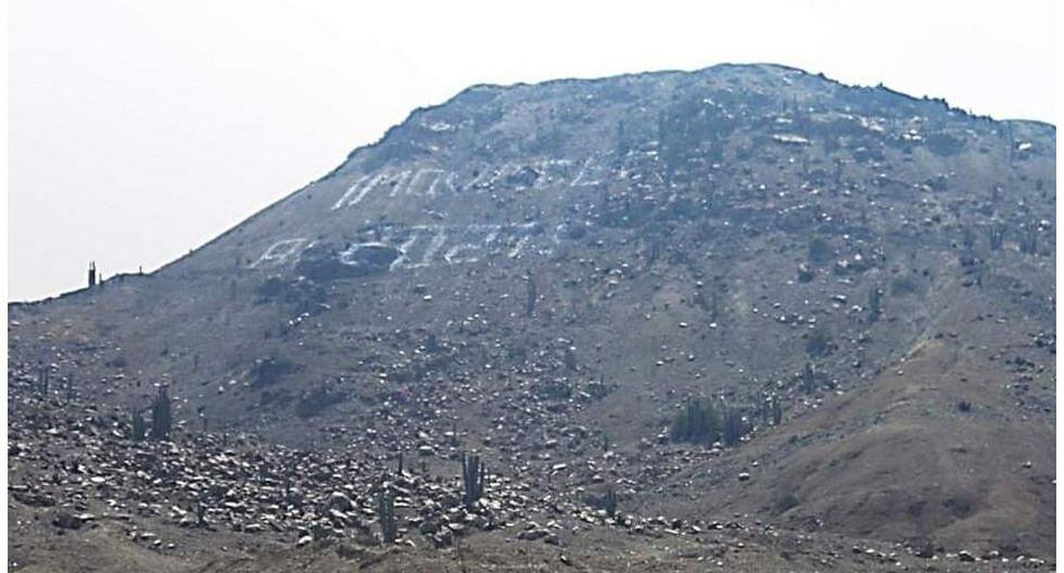 Efectivos policiales acudieron a esta zona ubicada en el centro poblado del mismo nombre, en Pomalca, para verificar las pintas realizadas en la parte superior del cerro.