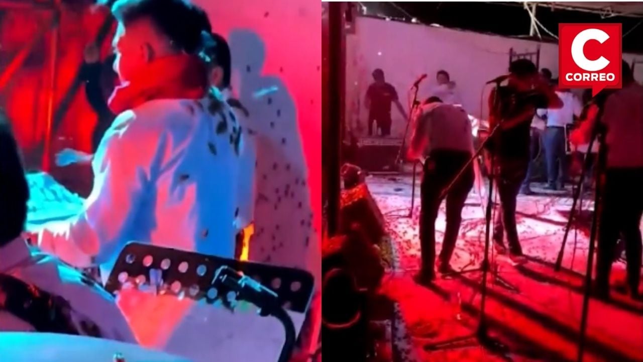Un grupo de cumbia fue sorprendido por una gran cantidad de grillos mientras realizaban una presentación en Laguna Larga, en el distrito de Olmos, región de Lambayeque.
