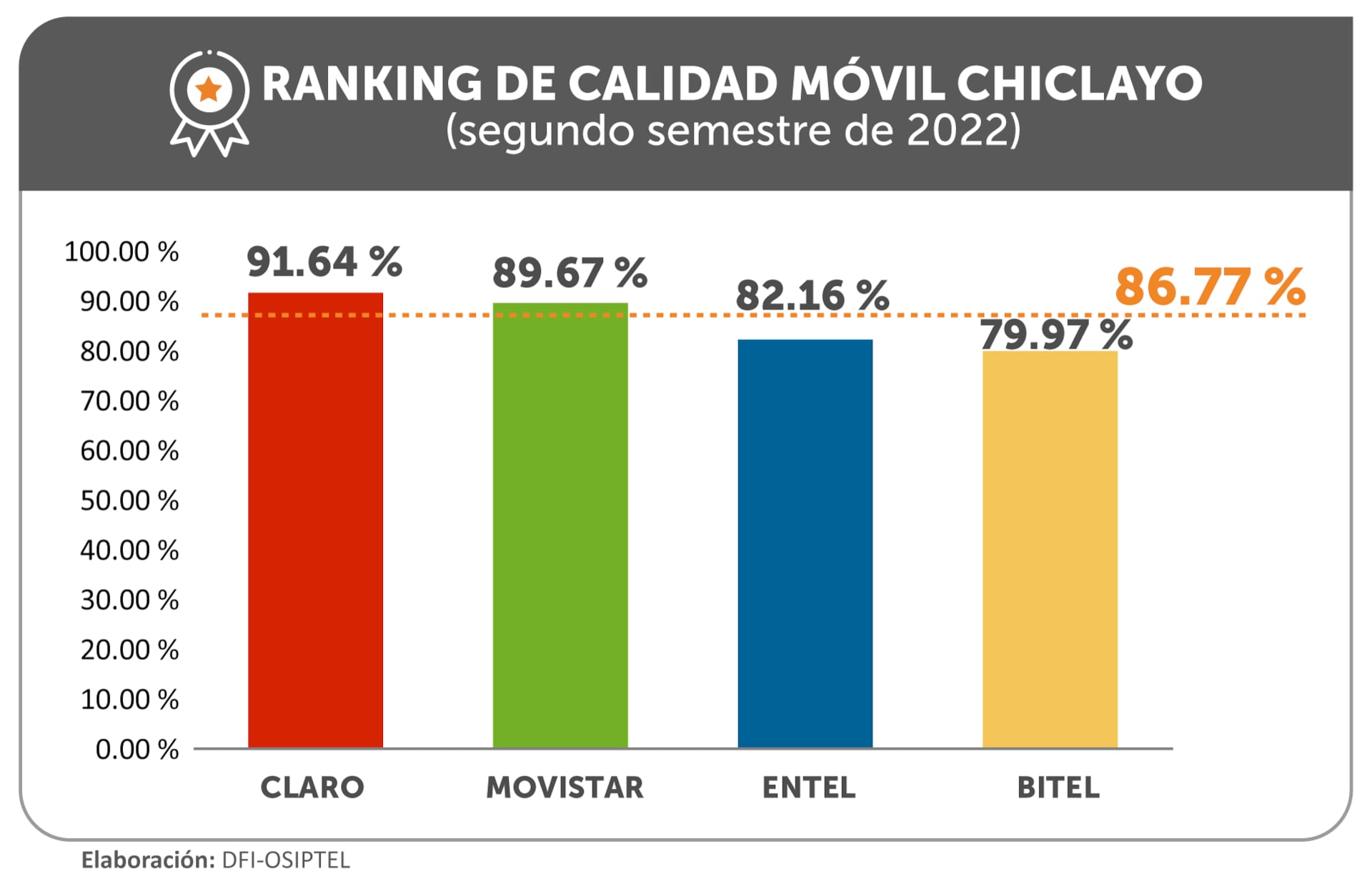 El Ranking de Calidad Móvil Distrital 2022, elaborado por el Organismo Supervisor de Inversión Privada en Telecomunicaciones (OSIPTEL) en 20 distritos de la zona urbana de la provincia de Chiclayo (Lambayeque), reveló que La Victoria, Picsi y José Leonardo Ortiz fueron los distritos con mejor desempeño en la prestación de los servicios de voz (llamadas) y datos en redes móviles, durante el segundo semestre del 2022.