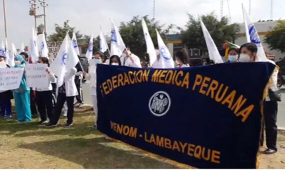 En tanto, los miembros de la Federación Médica Peruana de Lambayeque protestaron en la Gerencia Regional de Salud (Geresa).