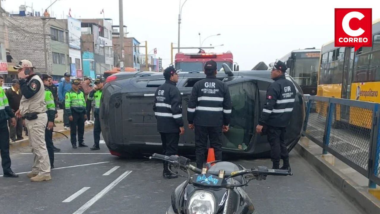 Según reportes preliminares, el siniestro ocurrió cuando una camioneta se despistó y volcó tras impactar contra la valla metálica que divide la vía mixta del carril exclusivo del Metropolitano.