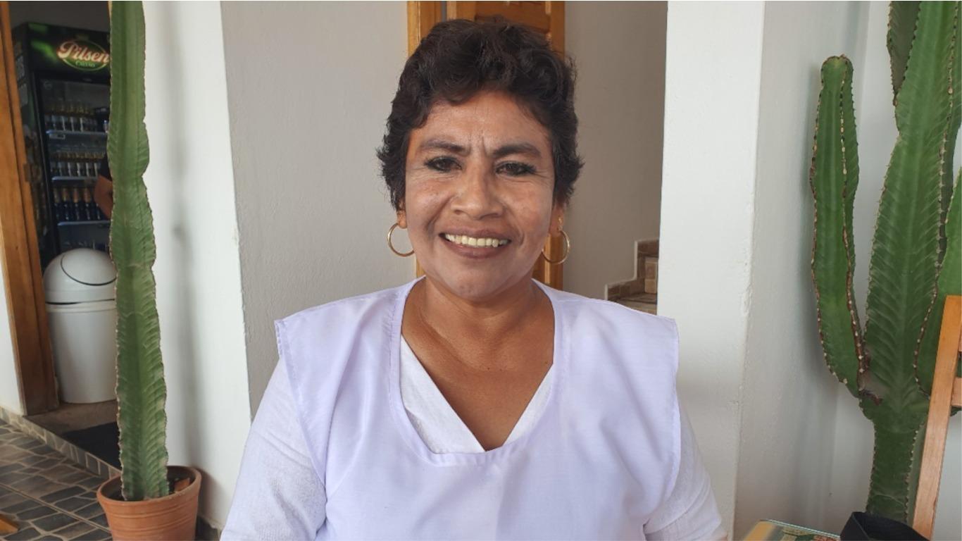 “Encuentran los pescados frescos del día, bastante amabilidad, cariño, porque es una restaurante acogedor y también porque tenemos una hermosa playa, mucha ruta turística”, informa a los usuarios.