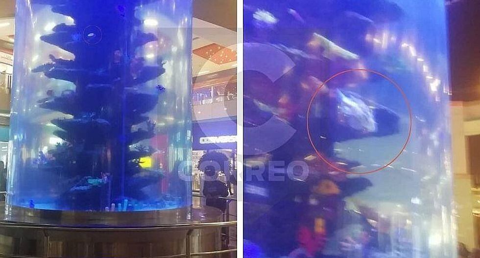 Son varias las fotos que los usuarios envían en redes sociales sobre los peces de Megaplaza, Este video es el que más sorprendió, fue filmado el 8 de mayo por un usuario, quien capta cómo la vida de este pez se iba desvaneciendo.- Perú Sin Acuarios reveló que ya le había enviado una carta a Grupo Nautilus.