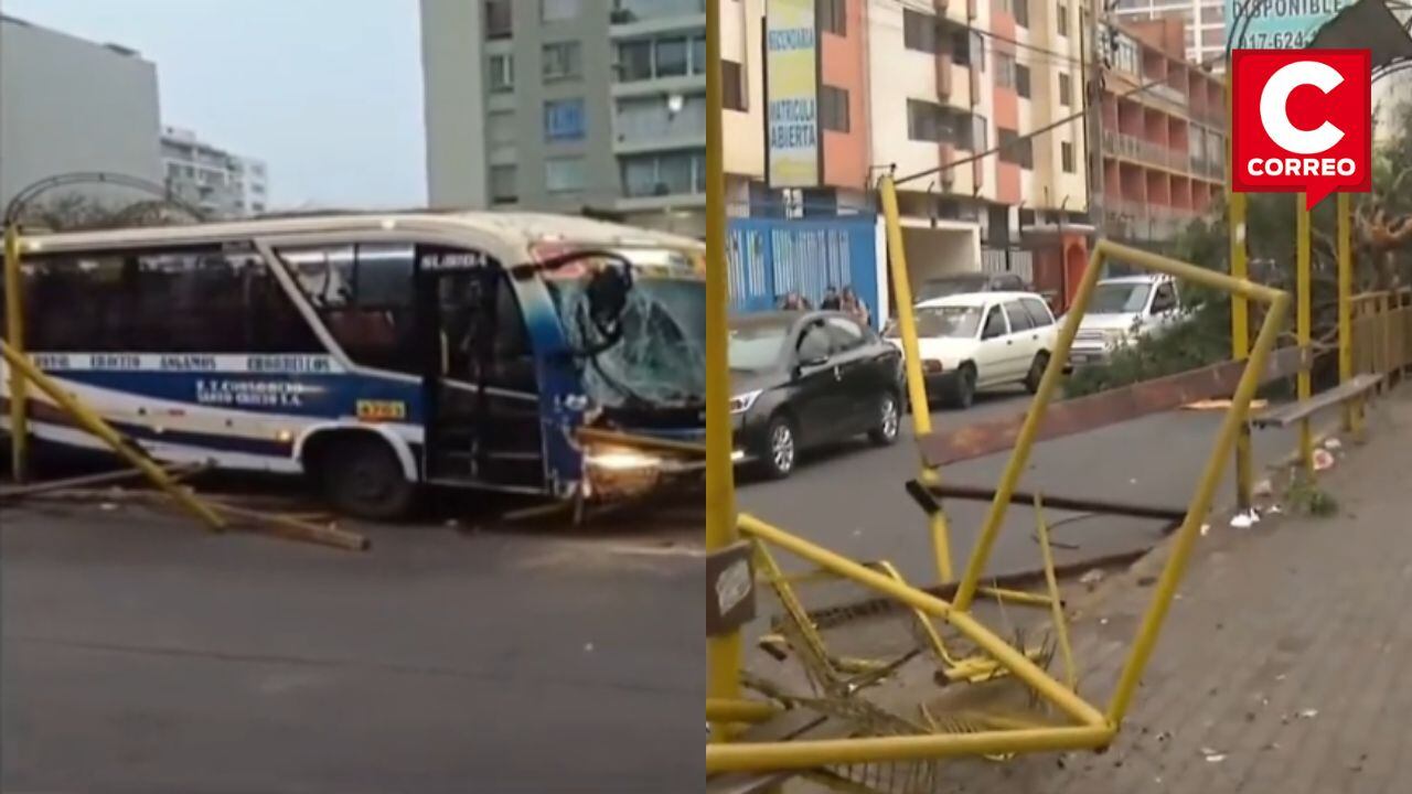 Al llegar al cruce con la avenida Canterac, el conductor perdió el control del vehículo e impactó contra la estructura metálica del paradero, destrozándola y llevándose consigo un árbol que se encontraba al lado.
