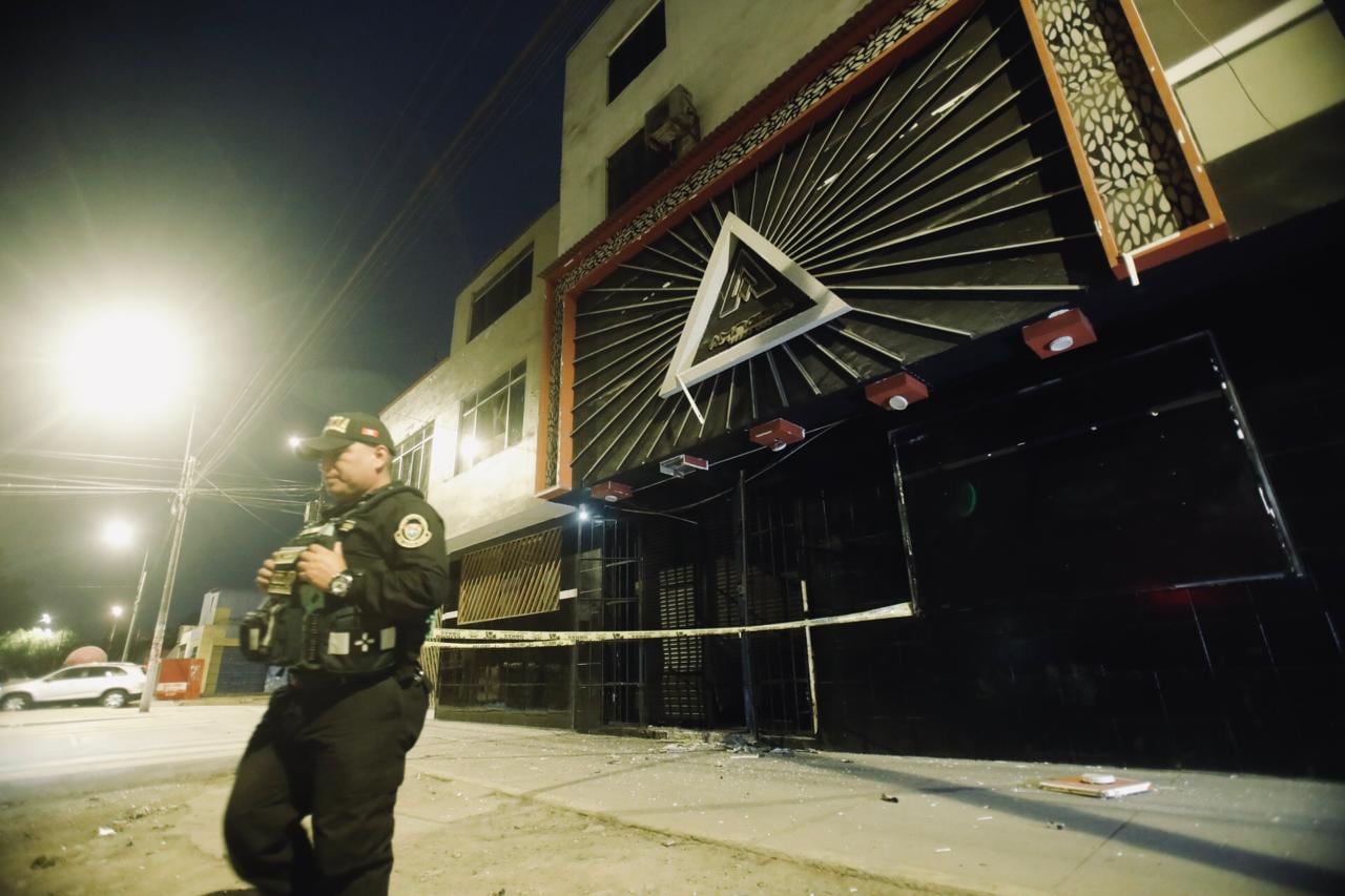 De acuerdo con RPP, la detonación causó severos daños en la fachada del local nocturno: la puerta está rota, parte del concreto se desprendió y la luminaria quedó totalmente destrozada.