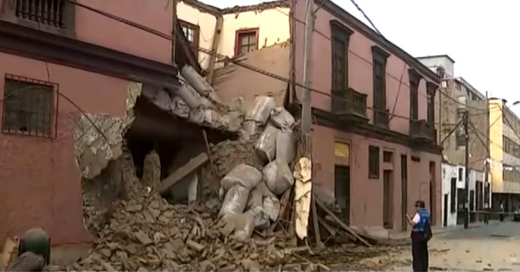 Un derrumbe se registró anoche en una casona ubicada en la cuadra 3 del jirón Cotabambas, en el Cercado de Lima. Una madre y su hijo se salvan de morir.