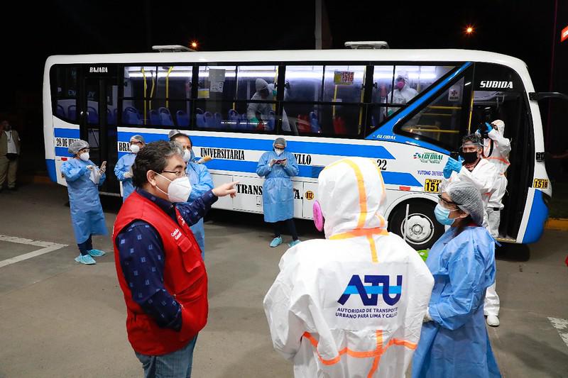 Las visitas de control se centran esta semana en la supervisión de la limpieza y desinfección de las unidades de transporte público convencional, que incluyen camionetas rurales, microbuses y omnibuses, a los cuales se ha destinado una transferencia de S/ 39 millones 617 mil 109.70 soles.
