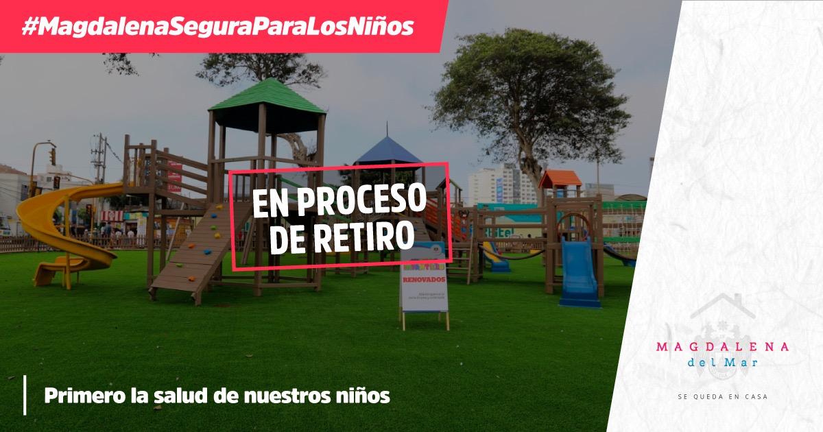 La Municipalidad de Magdalena del Mar inició el retiro progresivo de los juegos infantiles ubicados en los parques y malecones del distrito, con la finalidad de asegurar el distanciamiento social y evitar eventuales fuentes de contagio de coronavirus durante el Estado de Emergencia.