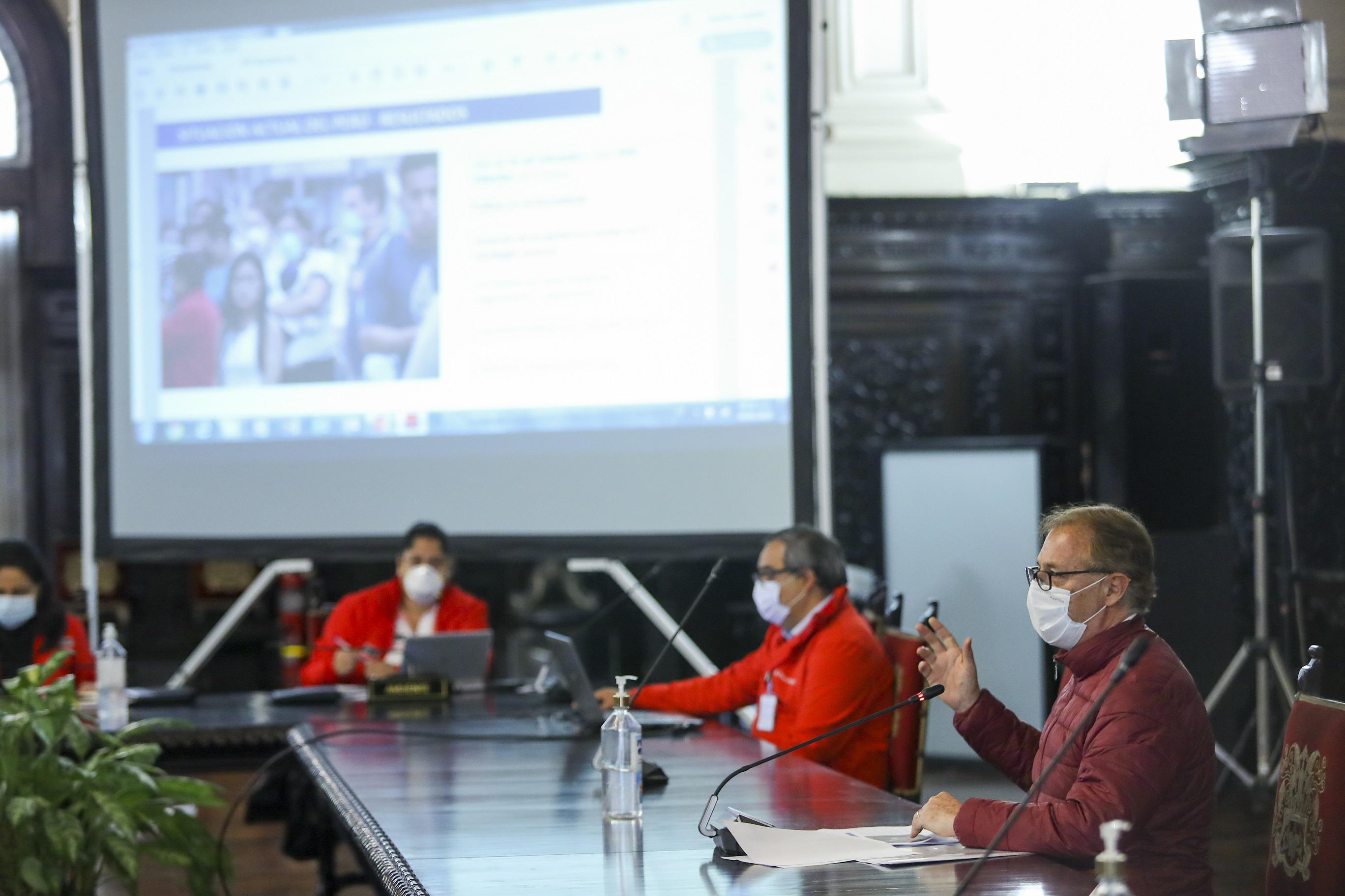 Con respecto a los mercados, exhortó a establecer rigurosos protocolos de seguridad consensuados con el Gobierno Central, además de contar con el rol coactivo de las Fuerzas Armadas y policiales para el control en los ingresos. Añadió que es importante continuar con la toma de pruebas rápidas a comerciantes y personal de apoyo, además de seguir promoviendo la desconcentración, a través de los mercados itinerantes.